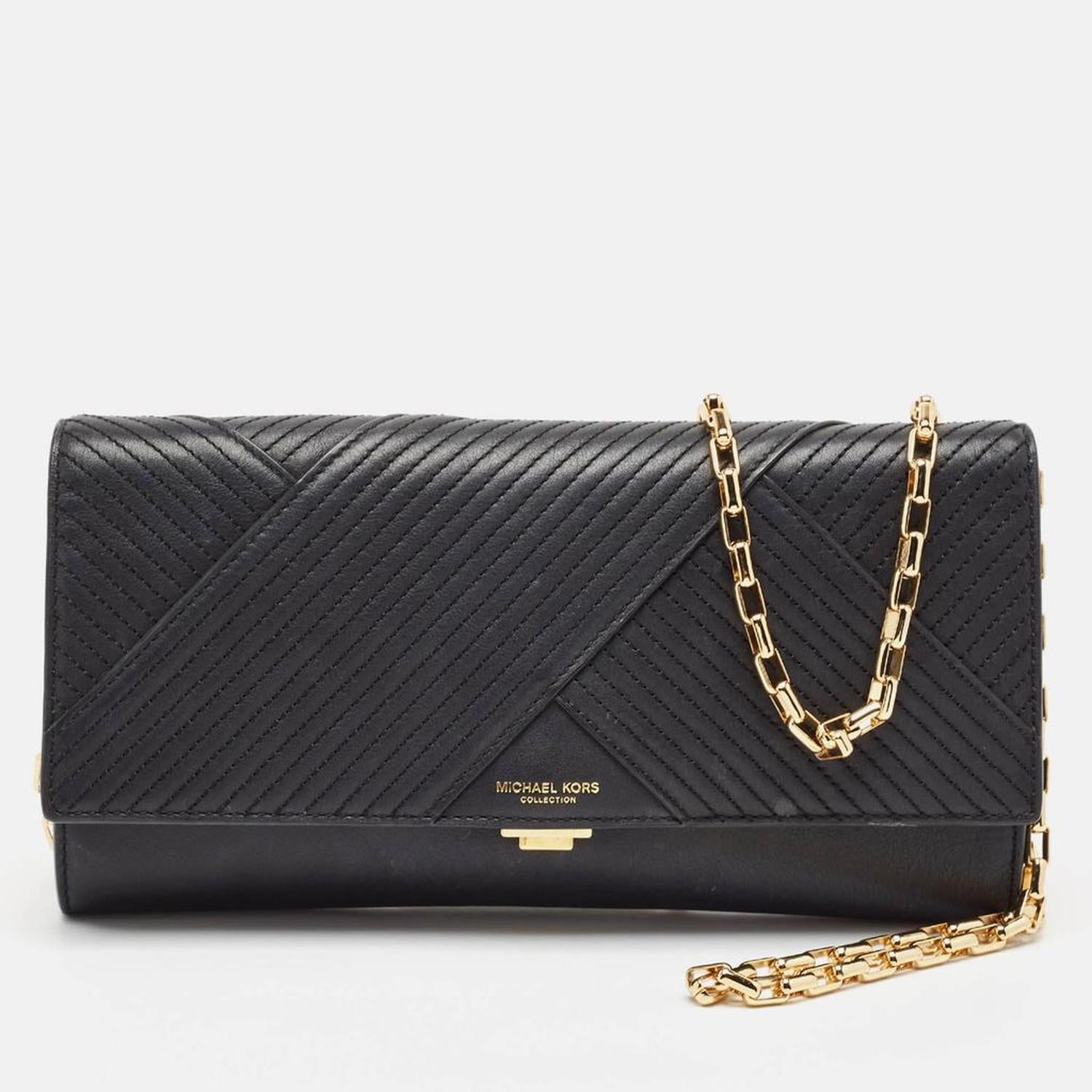 Michael Kors Quilted Black Leather Flap Chain Clutch