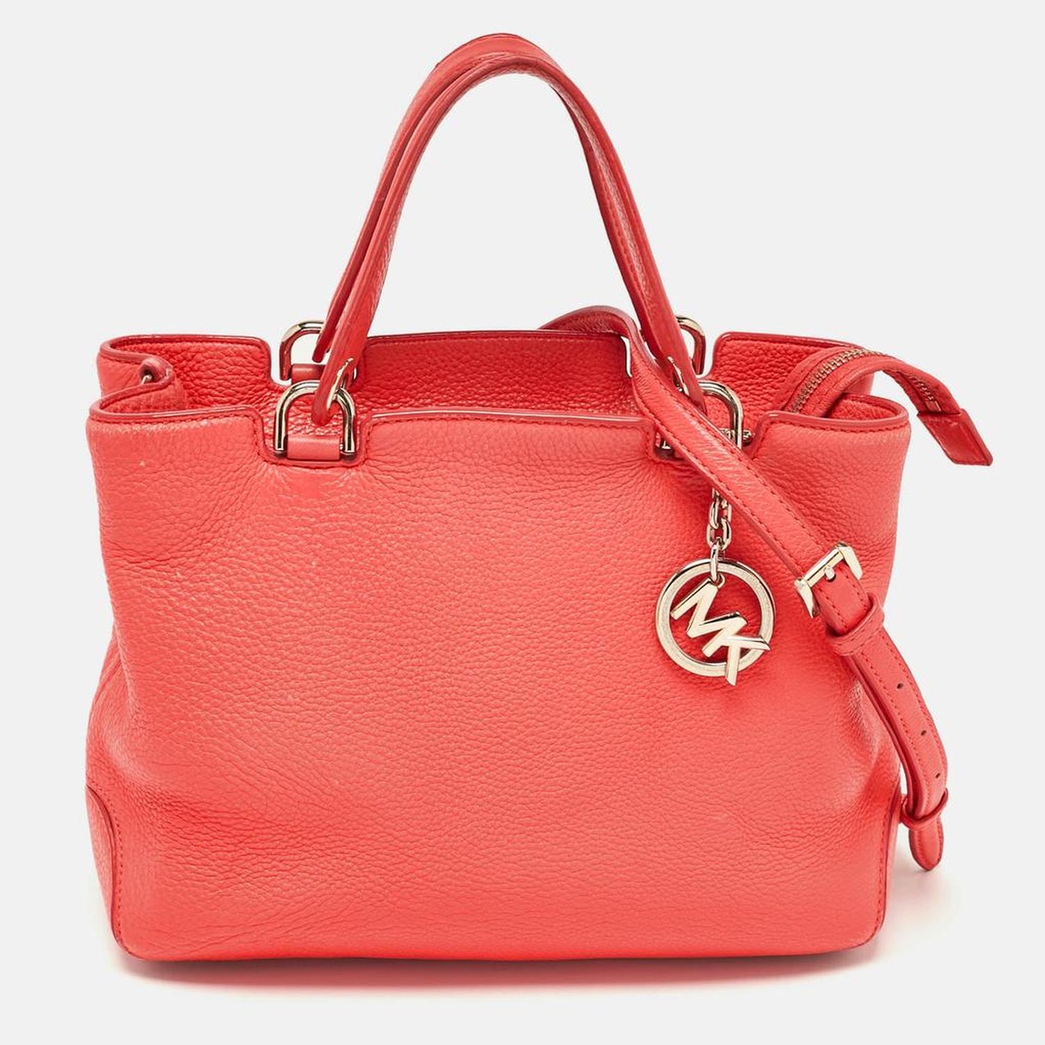 Michael Kors Red Soft Leather Anabelle Mid Zip Tote