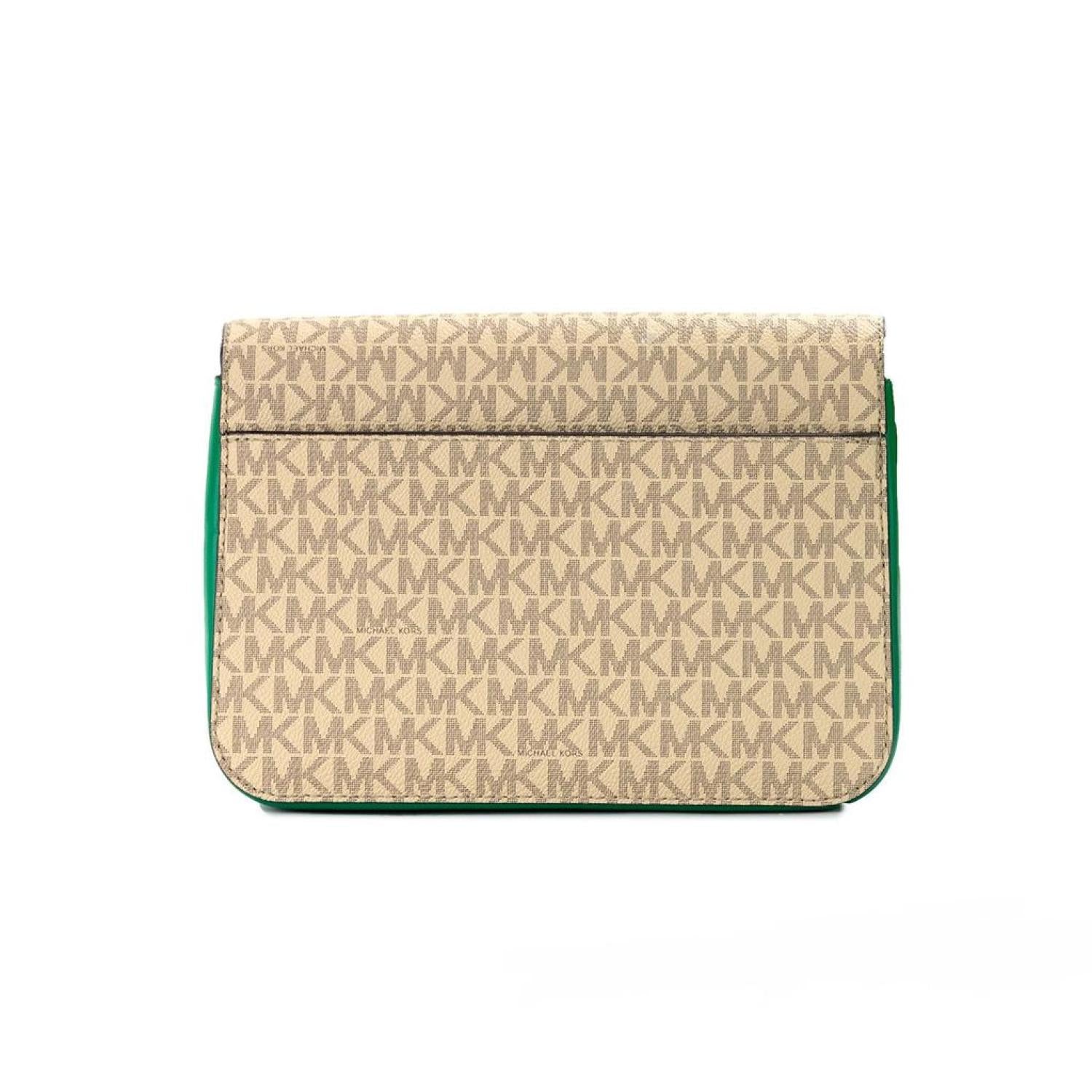 Style - Michael Kors Sloan Editor Medium Palmetto Green Flap Messenger HandbagMaterial - Signature PVC and Saffiano LeatherFeatures - Adjustable/Detachable Crossbody Strap, Inner Zip and Slip Pockets, Outer Slip Pocket, Fabric LinedMeasures - 23.49 cm L x 15.87 cm H x 8.89 cm D