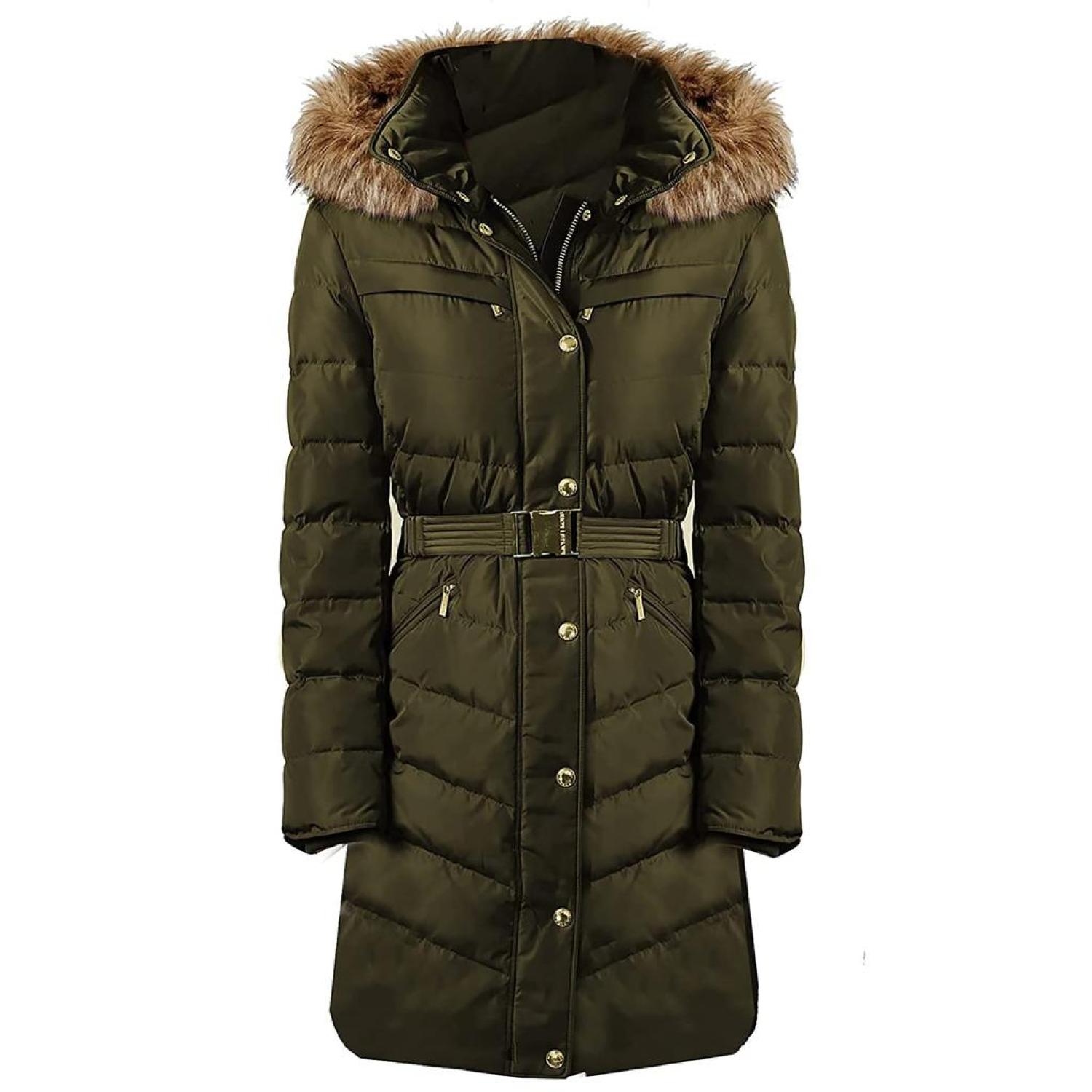 Michael Kors Women's Dark Moss Belted 3/4 Belted Puffer Coat