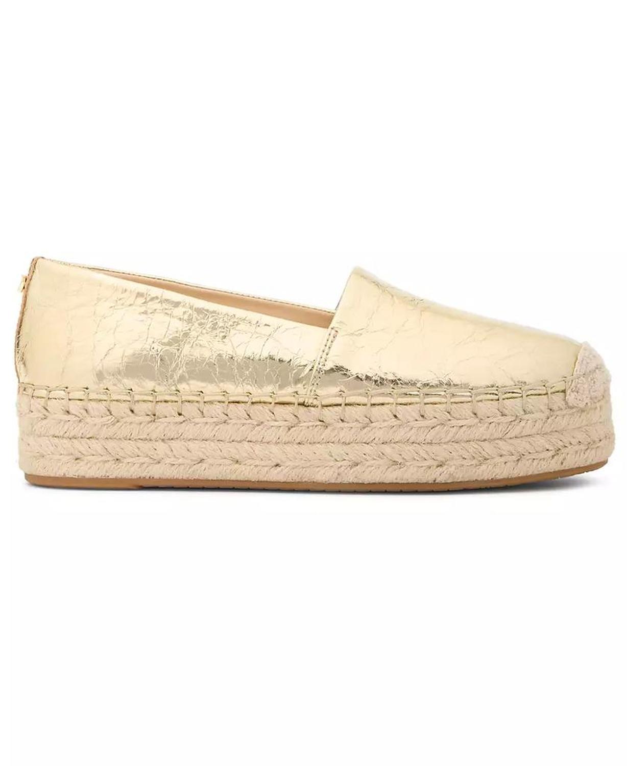 • Breeze through your day with the carefree sophistication of these Michael Kors Lynn espadrille flats, crafted with a classic round toe and effortless slip-on design. The woven sole adds texture and charm, while the sleek profile makes them easy to style.