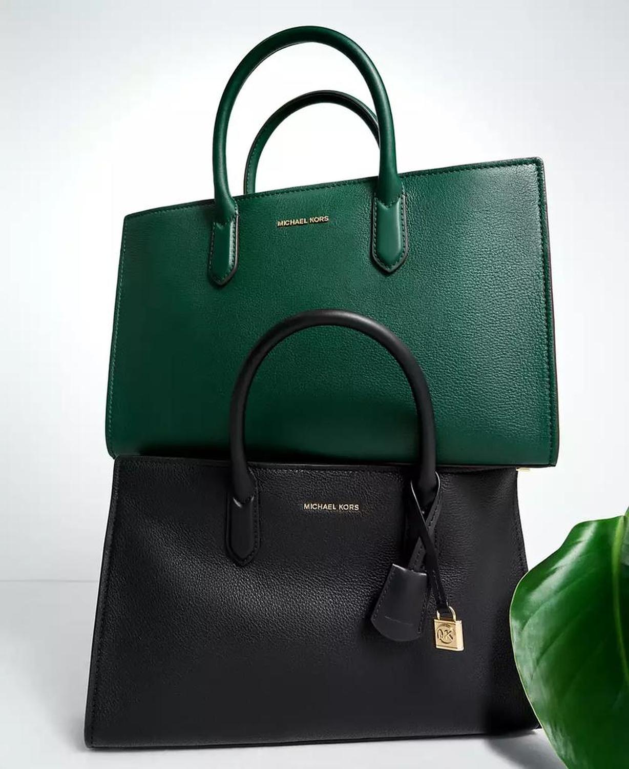 • This Scarlett collection carryall by MICHAEL Michael Kors is crafted from soft leather and boasts a canvas lined interior with a large zip pocket for storing small valuables.