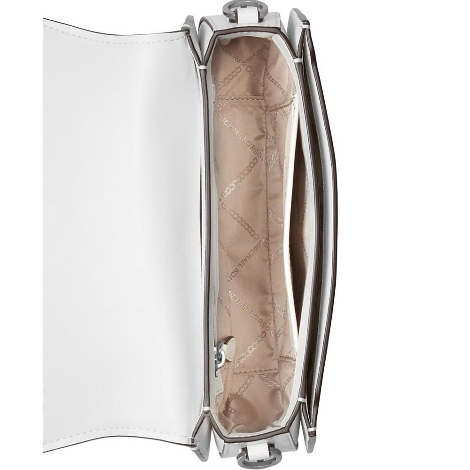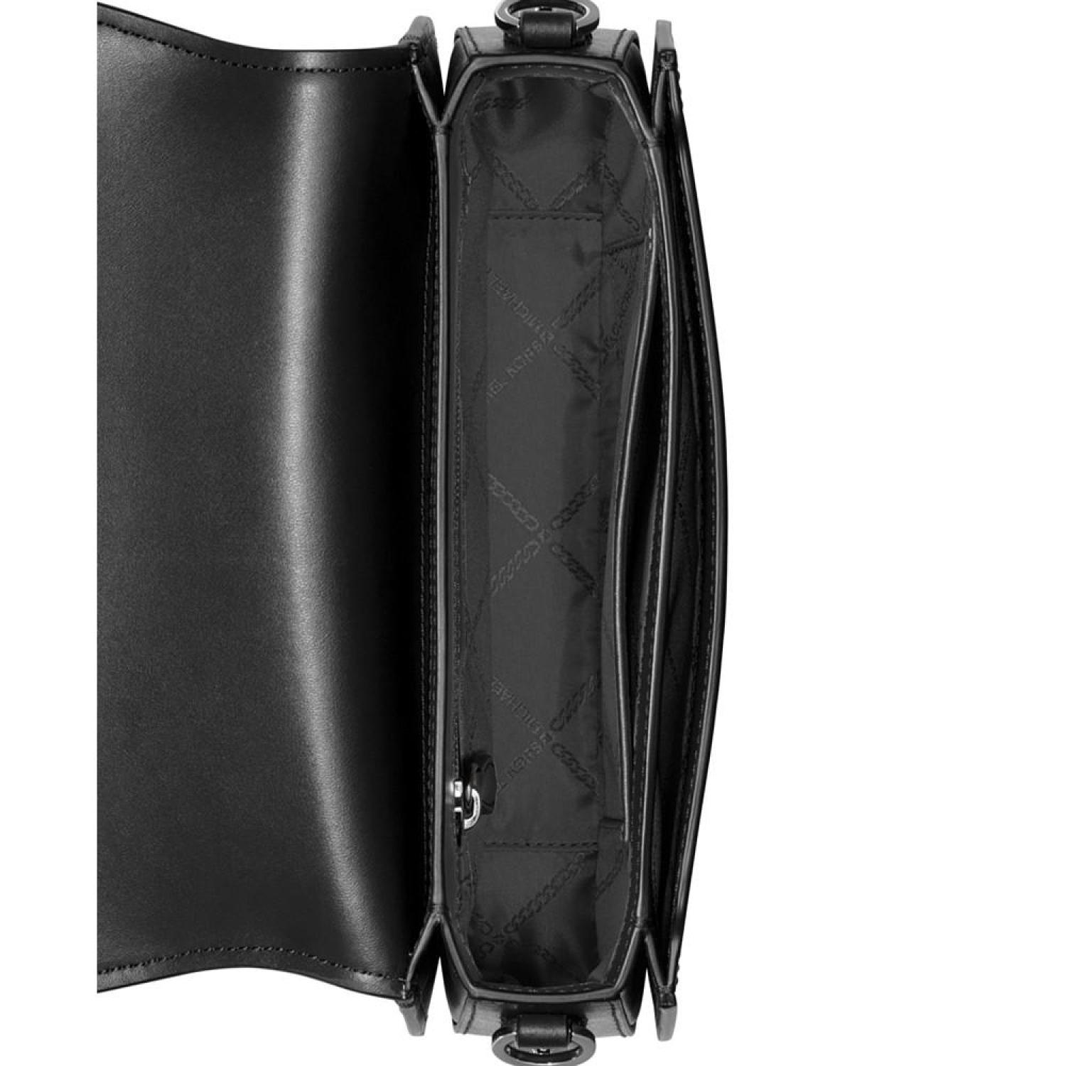 • Contemporary with a curved silhouette, the Mila Small Leather East West Sling Messenger by MICHAEL Michael Kors elevates everyday style.