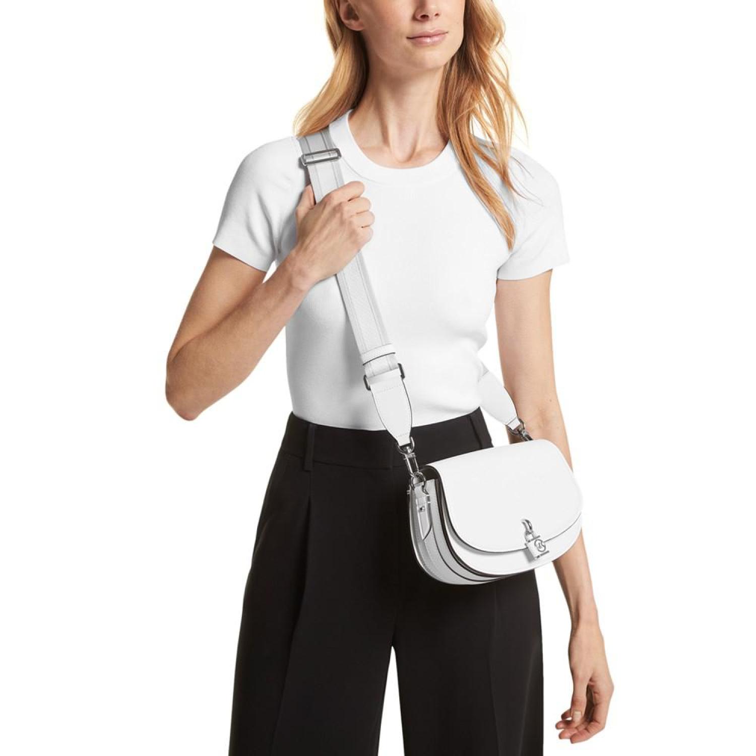 Contemporary with a curved silhouette, the Mila Small Leather East West Sling Messenger by MICHAEL Michael Kors elevates everyday style.