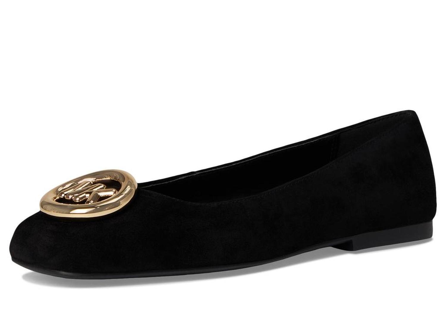 • The MICHAEL Michael Kors® Milan Flex Ballet is designed for effortless everyday elegance. Crafted from soft suede upper with a sleek square toe, it features a cushioned faux leather insole and flexible rubber outsole for all-day comfort. The standout detail is the iconic MK circle charm present at the vamp.