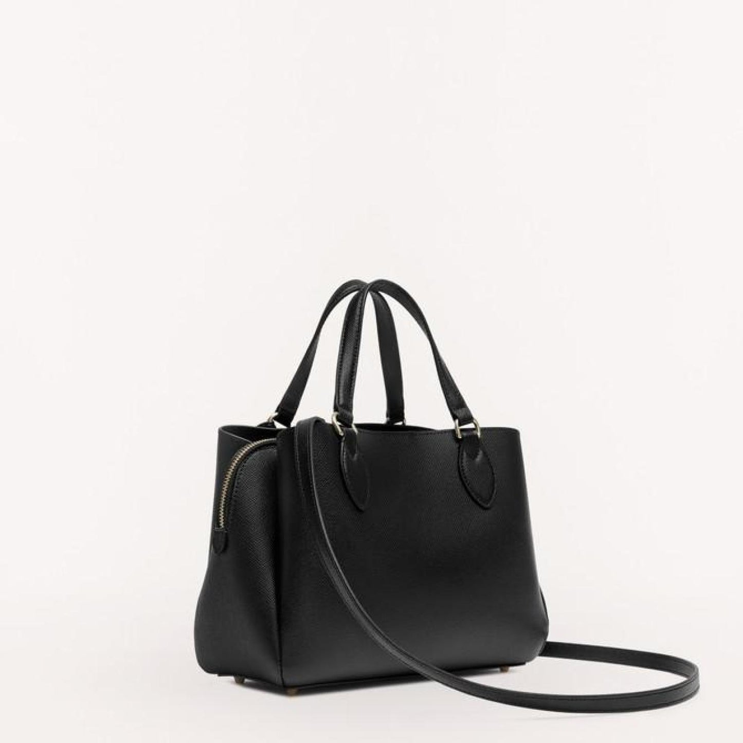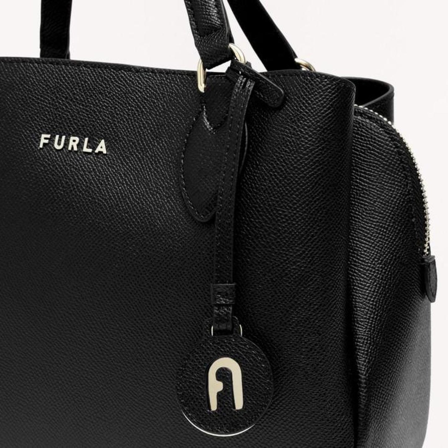 • Furla Minerva is a shopping bag made from Andromeda calfskin. The inside is divided into two large side compartments with magnetic closures and a zipped central partition, allowing you to neatly organise and store your personal belongings. The small accessory is also designed to be worn on the shoulder or as a crossbody thanks to its adjustable and removable leather shoulder strap. The model is completed with a charm and Arch logo badge in galvanised metal around the handle.