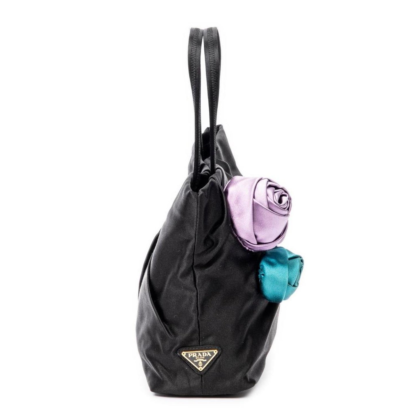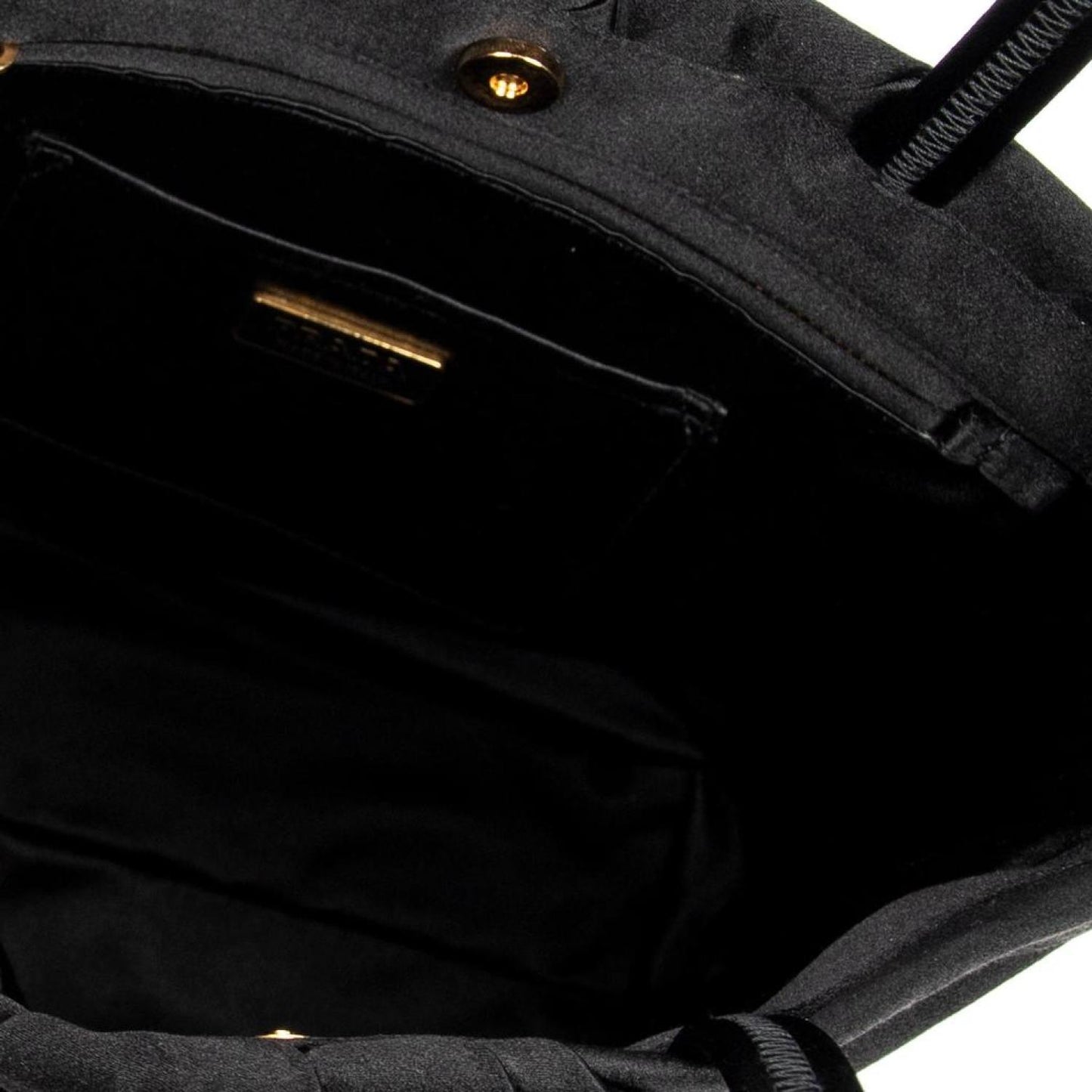Prada Handbag in Black Satin Canvas and Gold hardware. Dimensions - 19*20*9cm. Serial number - BN1660. Inclusions - Mirror, Card. Pre-Owned