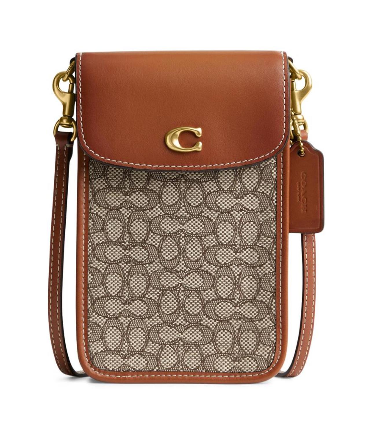 Please Note: COACH™ items cannot be shipped to military addresses (APO or FPO) and addresses in Hawaii, the Virgin Islands, Guam or any other locations outside of the continental US. The COACH™ Mini Signature Jacquard C Phone Crossbody is the ideal and must-have accessory for an everyday chic look. Featuring logo embossed textile and refined calf leather construction, the bag has a snap closure with detachable strap. Two interior credit card slots. Exterior slip pocket. Fabric lining. Imported. Measurements: Bottom Width: 1 1/16 in Height: 7 1/4 in