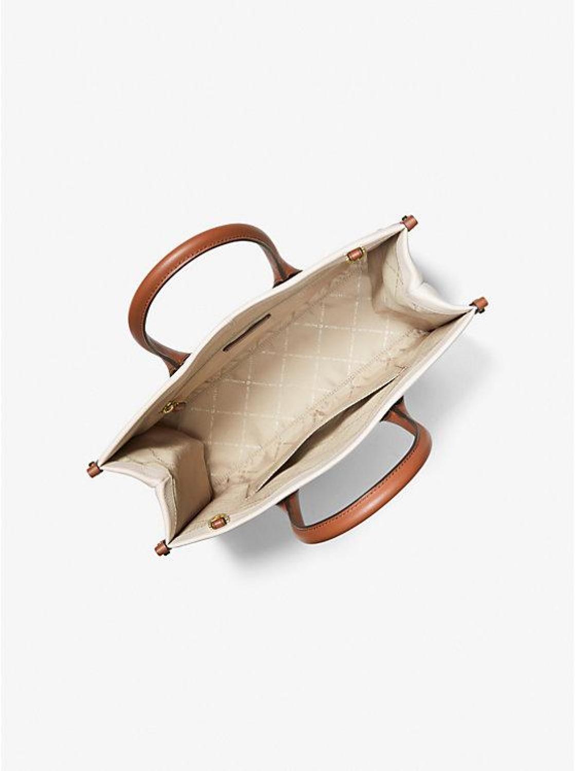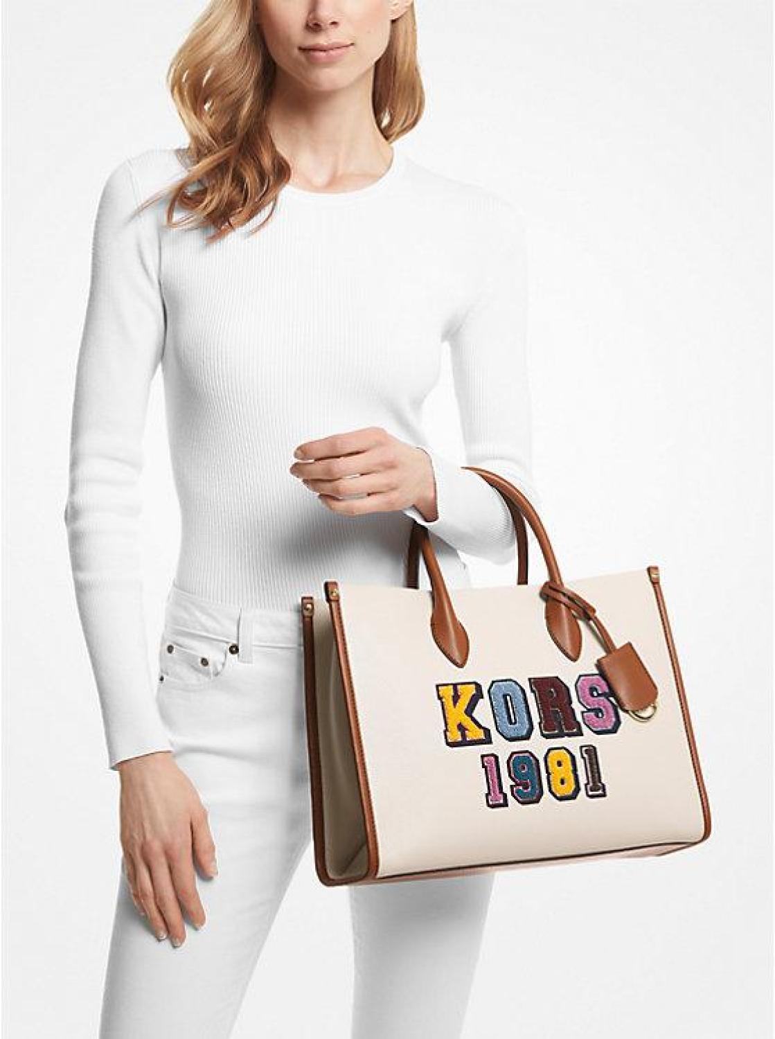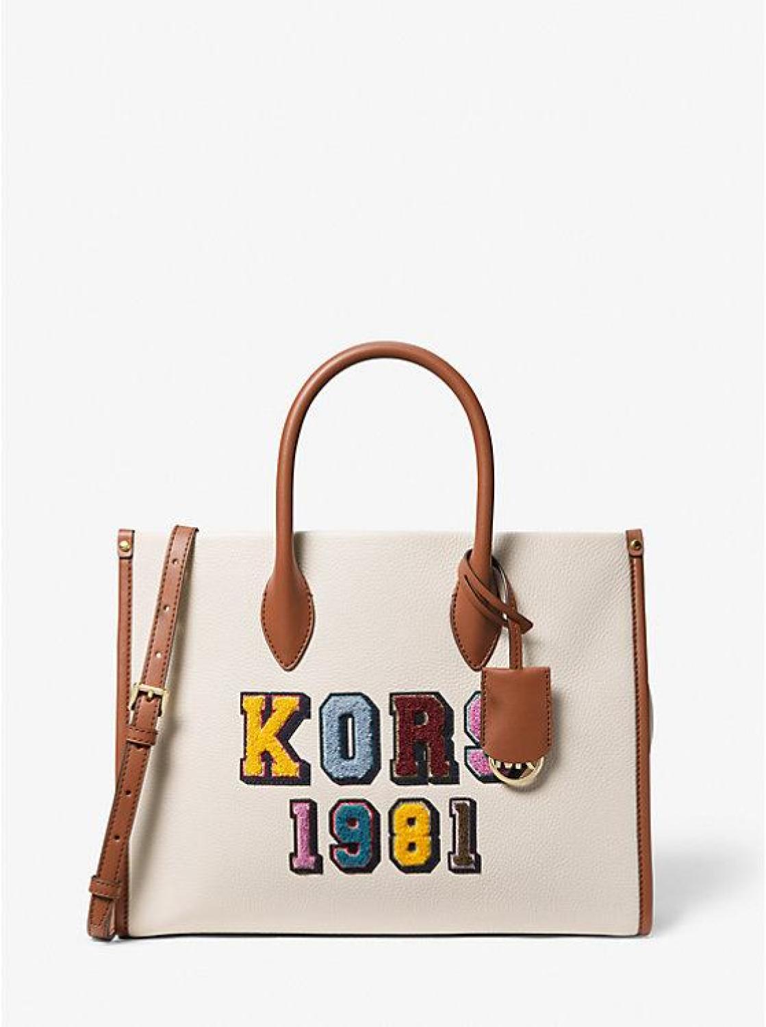 • Whether you’re heading to a daytime event or simply running errands, the Mirella will meet the moment. Fit a day’s worth of essentials and a makeup bag in this tote, which can be carried by the top handles or worn cross-body thanks to a removable strap. Crafted from pebbled leather that features textured “KORS” lettering, it’s a reliable way to add collegiate charm to any outfit.