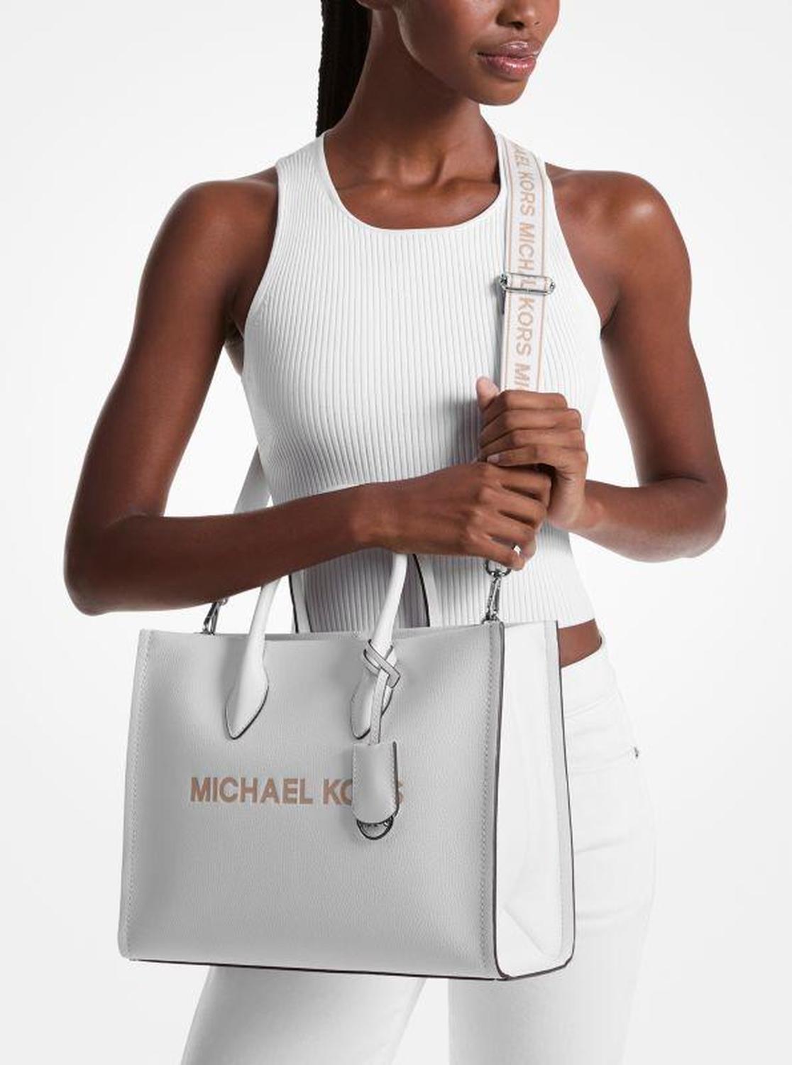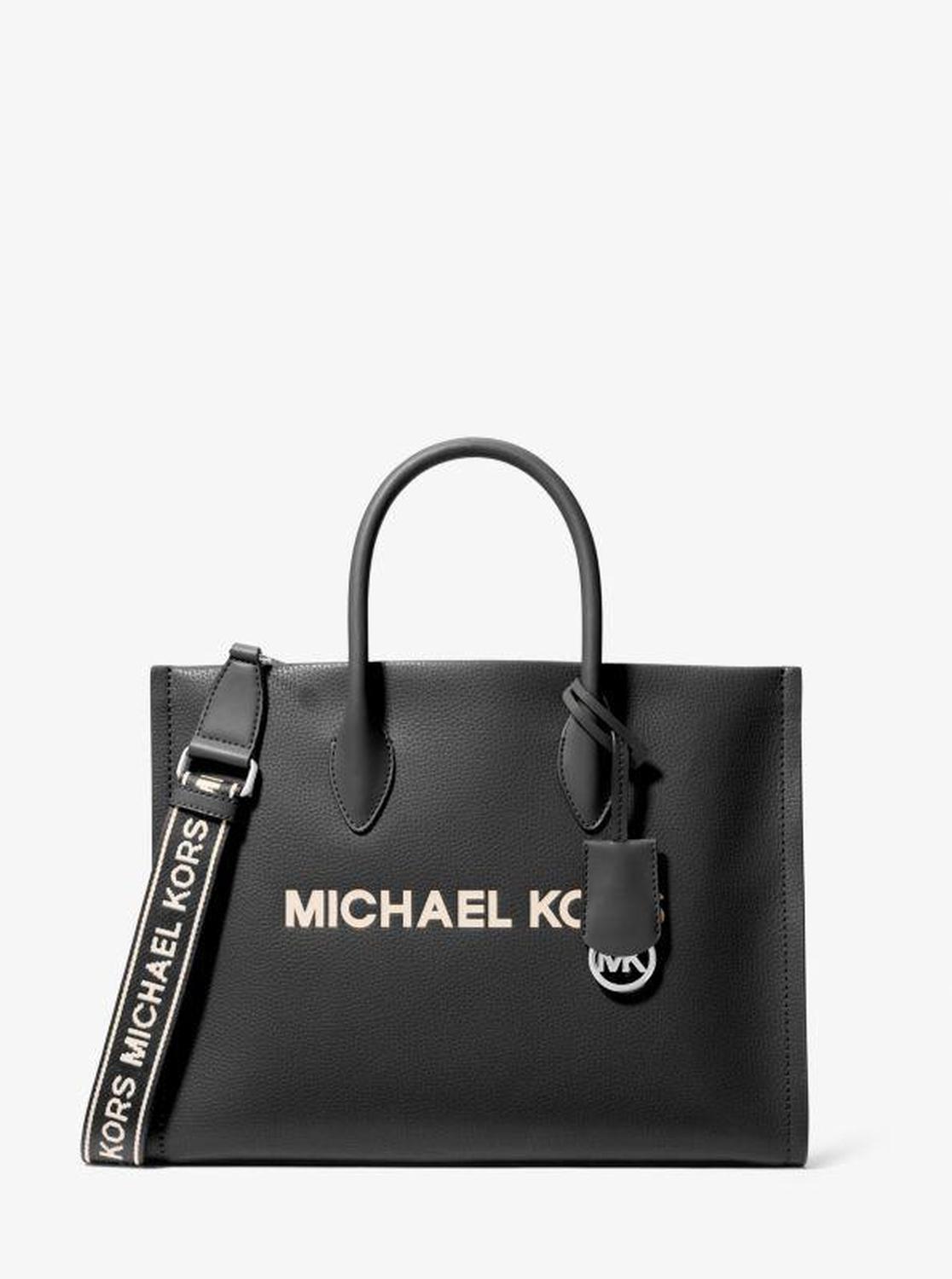 Crafted from pebbled leather in a structured silhouette, the Mirella tote features our iconic brand lettering and a polished logo charm for an ultra-luxe finish. With sleek top-handles and a woven crossbody strap, this bag will be your new daytime go-to. Wear it with denim and a classic white shirt. • Tote bag • Pebbled leather • 100% leather • Trim: 60% polyurethane/20% cotton/20% polyester • Silver-tone hardware • 13.75”W X 10.75”H X 4.75”D • Handle drop: 4.5” • Adjustable strap: 15”-25” • Interior details: back zip pocket • Lining: 100% polyester • Dust bag not included • Imported • Tote bag • Pebbled leather • 100% leather • Trim: 60% polyurethane/20% cotton/20% polyester • Silver-tone hardware • 13.75”W X 10.75”H X 4.75”D • Handle drop: 4.5” • Adjustable strap: 15”-25” • Interior details: back zip pocket • Lining: 100% polyester • Dust bag not included • Imported