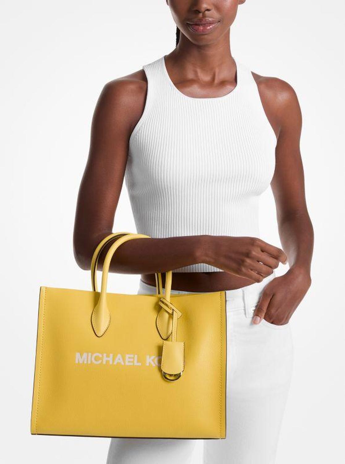 Crafted from pebbled leather in a structured silhouette, the Mirella tote features our iconic brand lettering and a polished logo charm for an ultra-luxe finish. With sleek top-handles and a woven crossbody strap, this bag will be your new daytime go-to. Wear it with denim and a classic white shirt. • Tote bag • Pebbled leather • 100% leather • Trim: 60% polyurethane/20% cotton/20% polyester • Gold-tone hardware • 13.75”W X 10.75”H X 4.75”D • Handle drop: 4.5” • Adjustable strap: 15”-25” • Interior details: back zip pocket • Lining: 100% polyester • Dust bag not included • Imported • Tote bag • Pebbled leather • 100% leather • Trim: 60% polyurethane/20% cotton/20% polyester • Gold-tone hardware • 13.75”W X 10.75”H X 4.75”D • Handle drop: 4.5” • Adjustable strap: 15”-25” • Interior details: back zip pocket • Lining: 100% polyester • Dust bag not included • Imported
