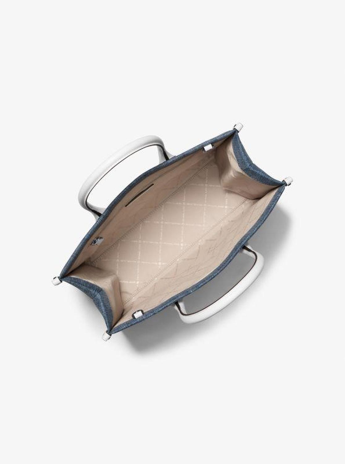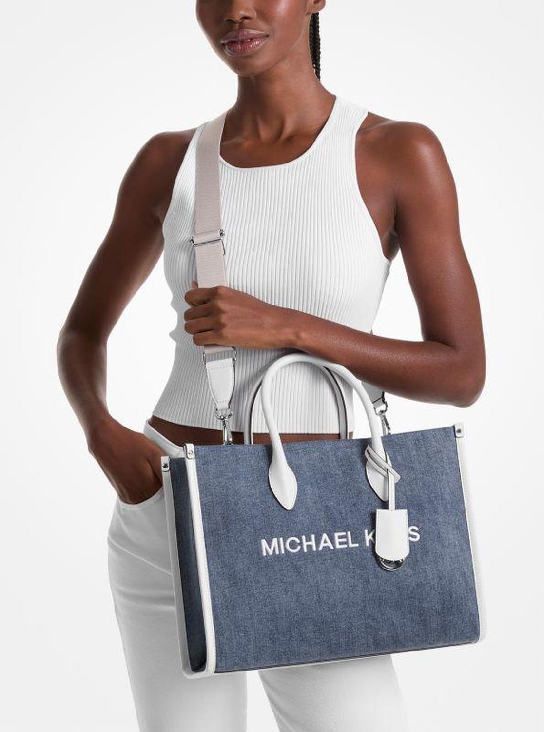 Crafted from washed denim in a structured silhouette, the Mirella tote features our iconic brand lettering and a polished logo charm for an ultra-luxe finish. With sleek top-handles and a woven crossbody strap, this bag will be your new daytime go-to. Wear it with denim and a classic white shirt. • Tote bag • Denim • 94% cotton/4% polyester/2% spandex • Trim 1: 60% polyurethane/20% cotton/20% polyester • Trim 2: 85% acrylic/15% polyester • Silver-tone hardware • 13.75”W X 10.75”H X 4.75”D • Handle drop: 4.5” • Adjustable strap: 15”-25” • Interior details: back zip pocket • Lining: 100% polyester • Dust bag not included • Imported • Tote bag • Denim • 94% cotton/4% polyester/2% spandex • Trim 1: 60% polyurethane/20% cotton/20% polyester • Trim 2: 85% acrylic/15% polyester • Silver-tone hardware • 13.75”W X 10.75”H X 4.75”D • Handle drop: 4.5” • Adjustable strap: 15”-25” • Interior details: back zip pocket • Lining: 100% polyester • Dust bag not included • Imported