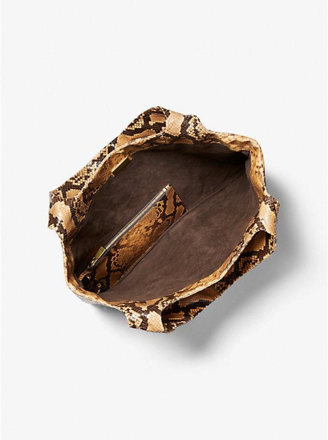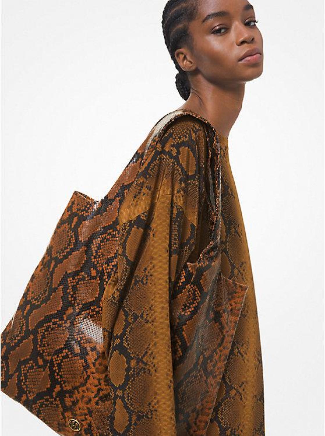 Python-embossed leather construction instills our softly structured Monogramme tote bag with exotic appeal, while a scaled-down MKC charm tops this Italian-made carryall with signature panache. With a spacious, suede-lined interior, it’s the ultimate companion from the city to the shore and everywhere in between. Tote bag Python embossed calf leather 100% leather Gold-tone hardware 18.5”W X 15.5”H X 1”D Handle drop: 9” Interior details: zip pouch Lining: 100% suede Dust bag not included Made in Italy Tote bag Python embossed calf leather 100% leather Gold-tone hardware 18.5”W X 15.5”H X 1”D Handle drop: 9” Interior details: zip pouch Lining: 100% suede Dust bag not included Made in Italy