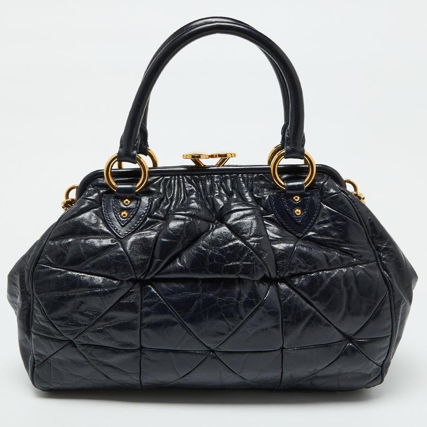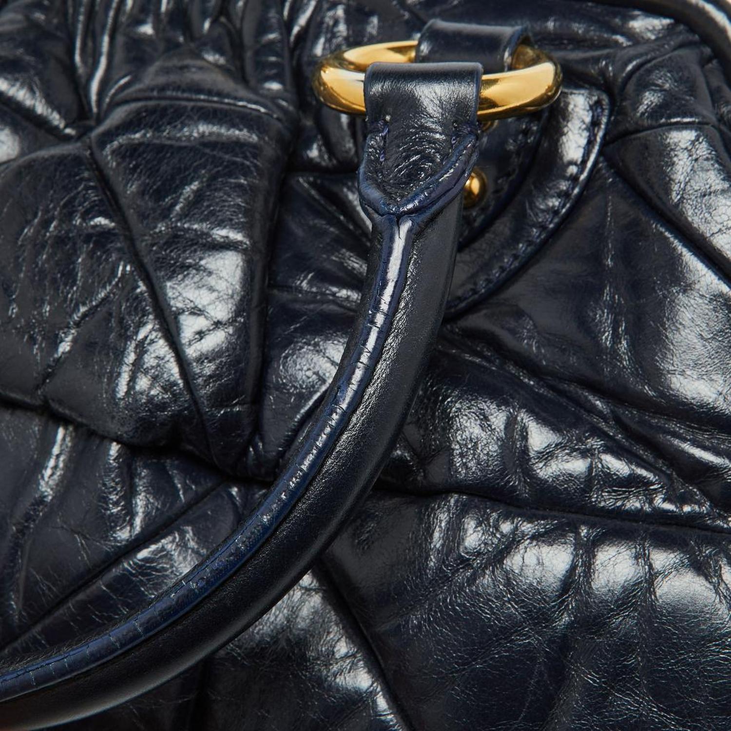Navy Blue Quilted Leather Stam Satchel