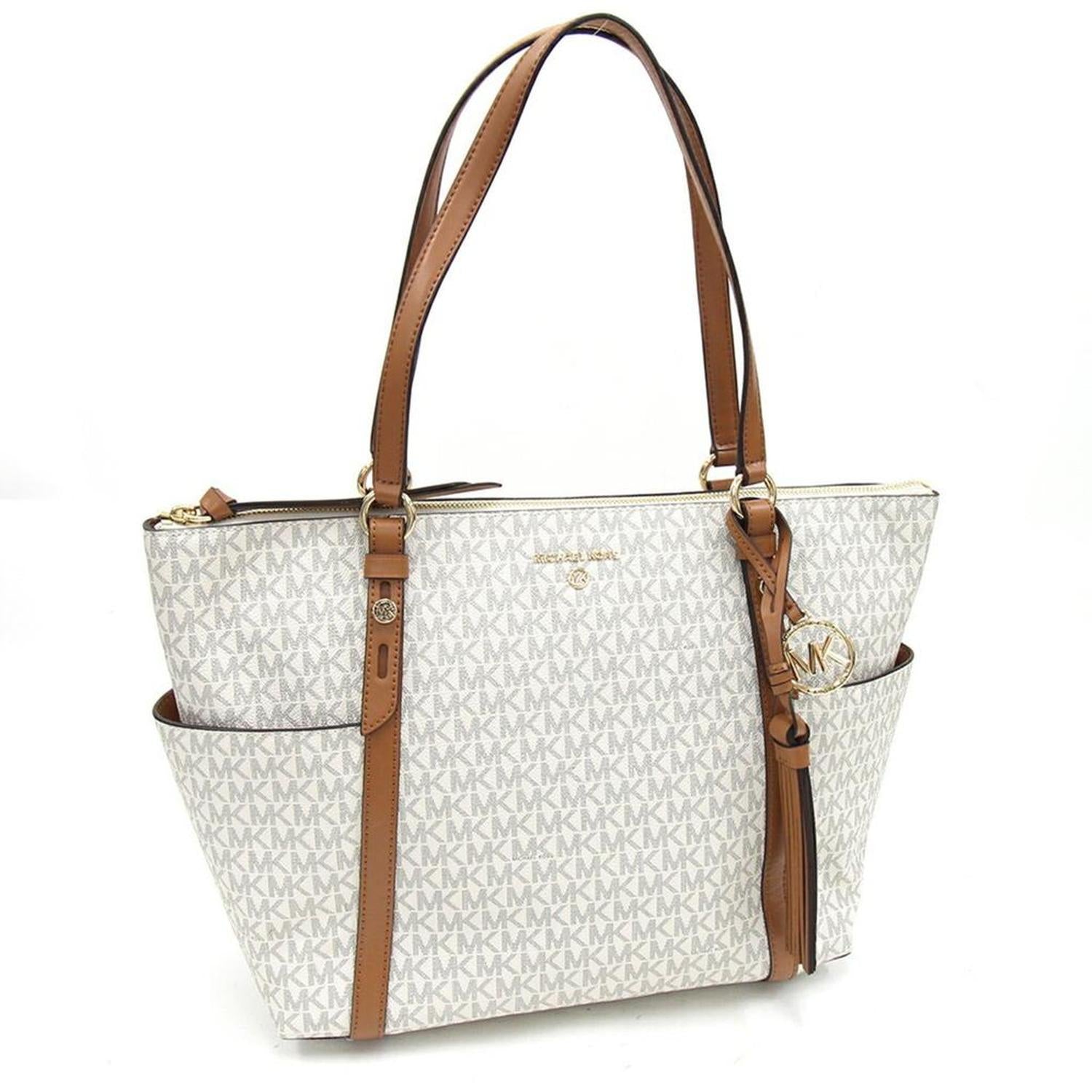 Brand - Michael Kors, Color - Brown, Off-white, Material - PVC, Leather, Dimensions - 28cm x 43cm x 14cm / 11.02'' x 16.92'' x 5.51'', Condition - Rank SA. Rank SA Used - Hardly any traces of usage nice item or refurbished item. Before purchasing, please refer to the images for the exact condition of the item. Before purchasing, please refer to the images of the accessories included with the item. Damage Ranking - Insignificant Size - One Size