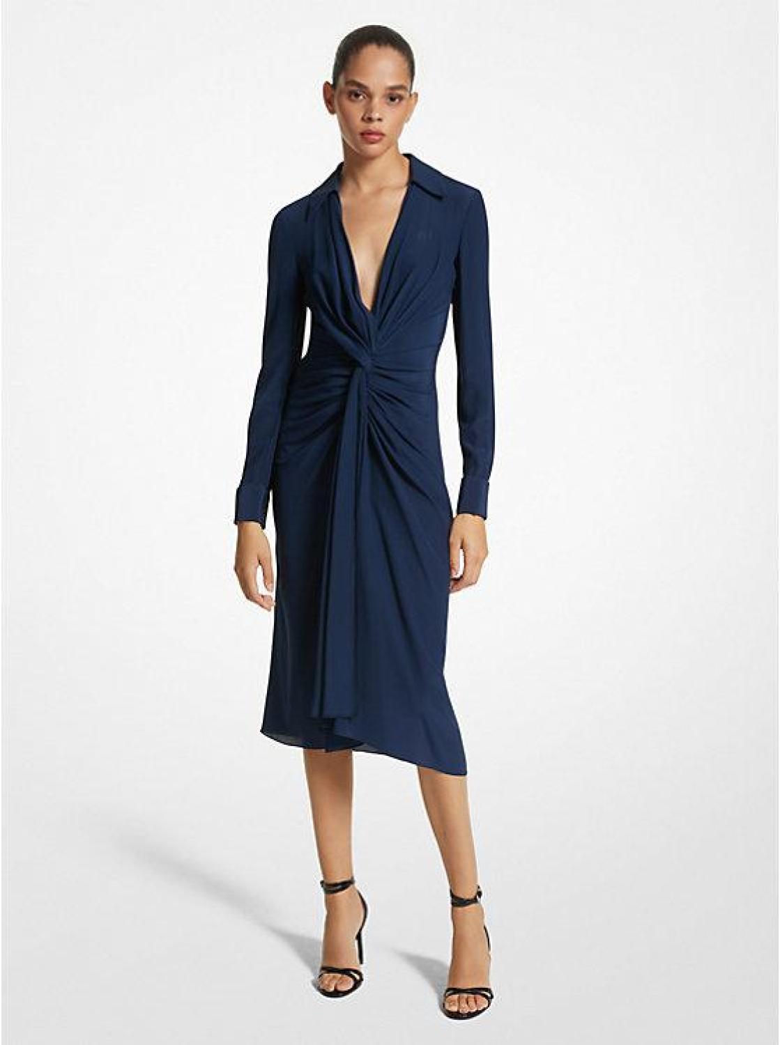 • This shirtdress is the kind of modern style that will transcend seasons, meaning you’ll wear it for years to come. Organic silk crepe de chine enhances the delicate drape, while a French twist detail at the bodice draws the eye in. Accentuate the plunging neckline with a statement necklace.