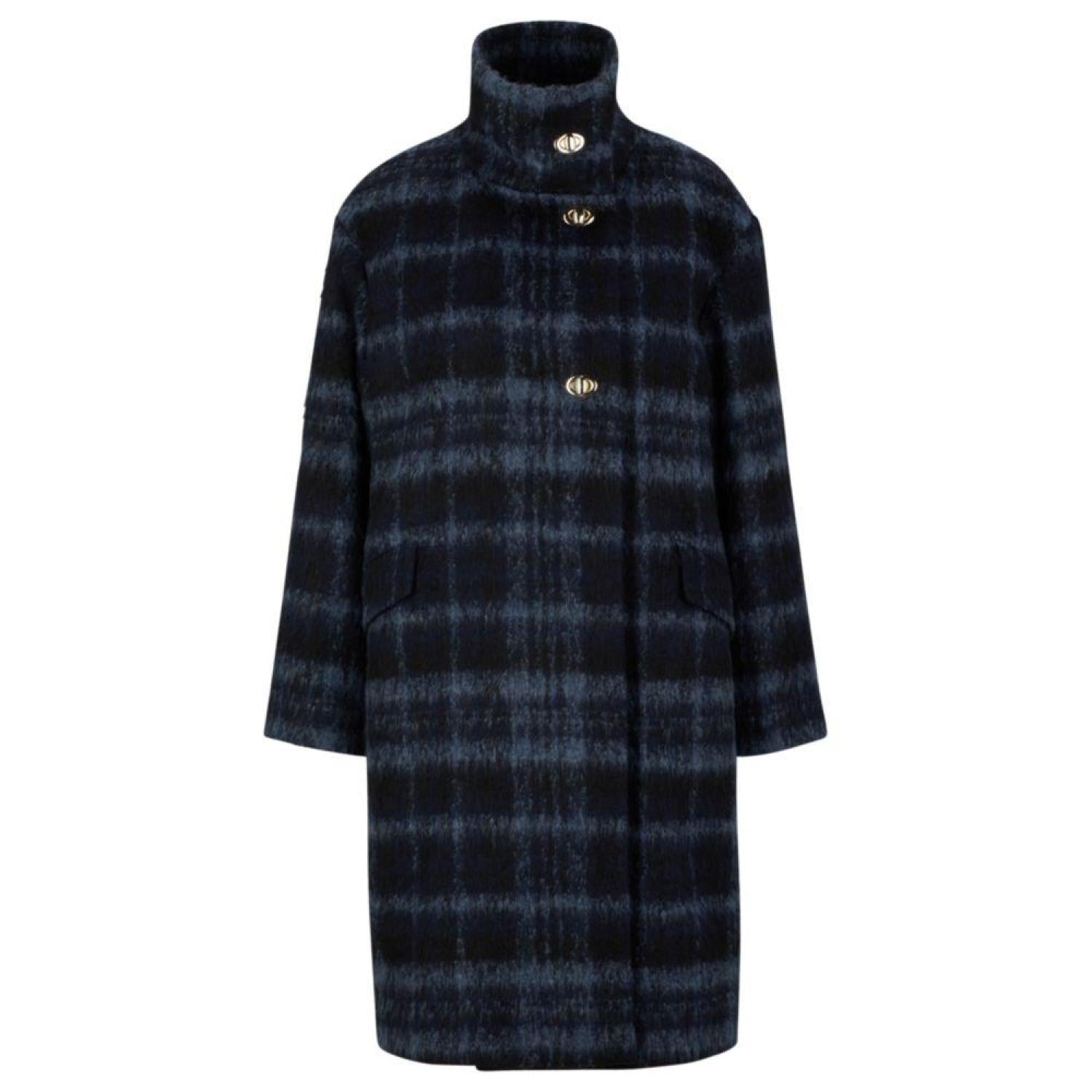 Oversize-fit checked coat with turn-lock closures