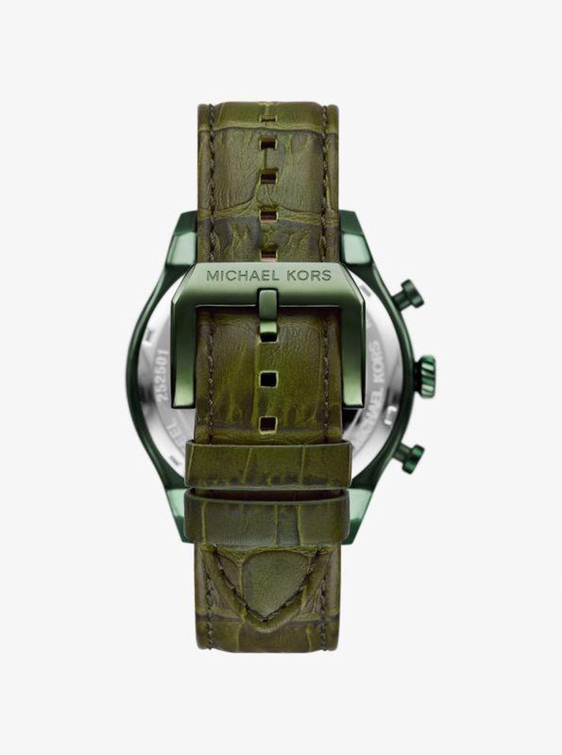 Oversized Panorama Olive-Tone and Crocodile Embossed Leather Watch