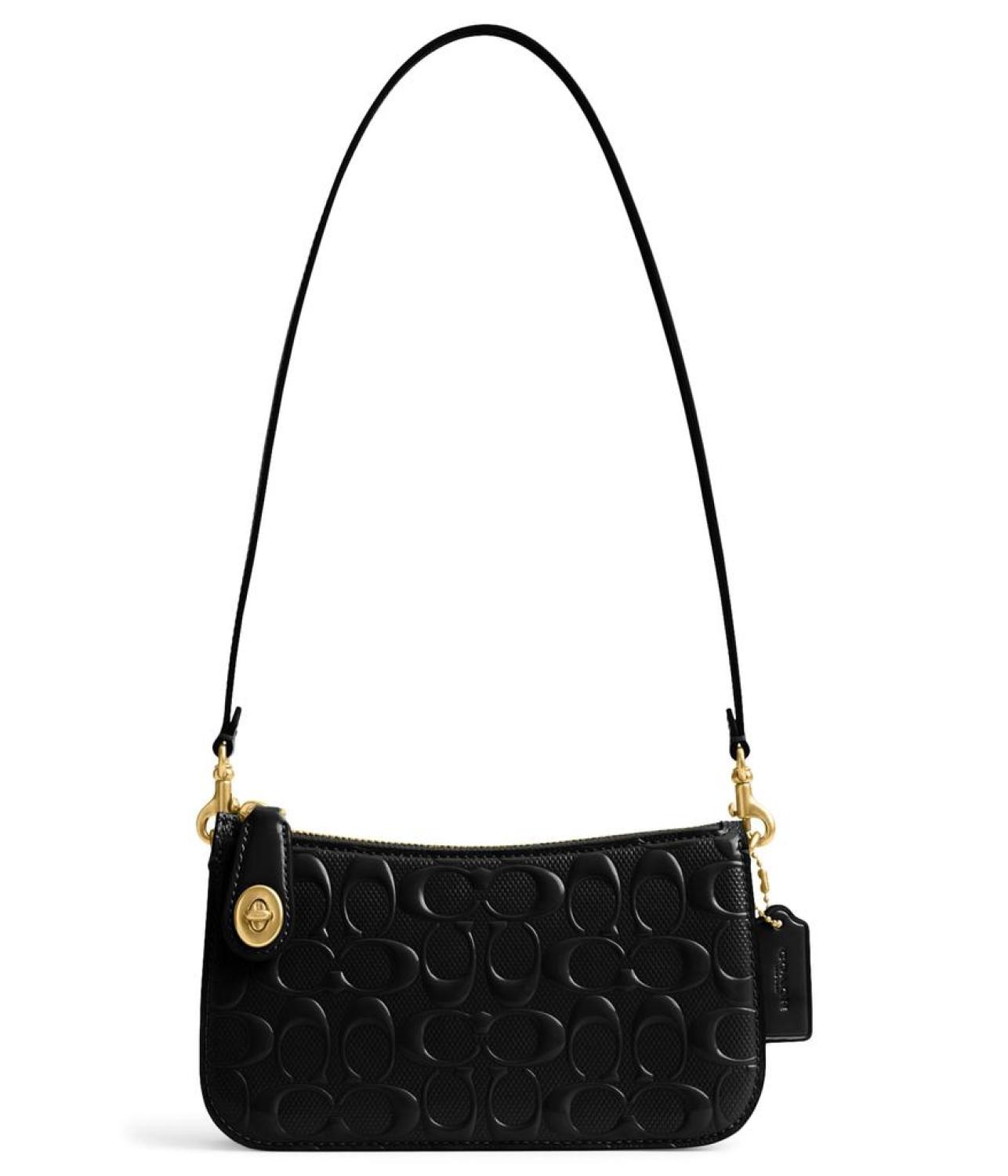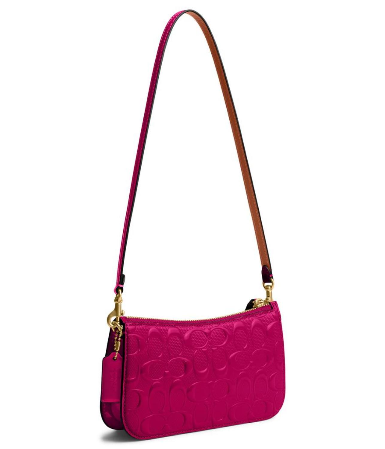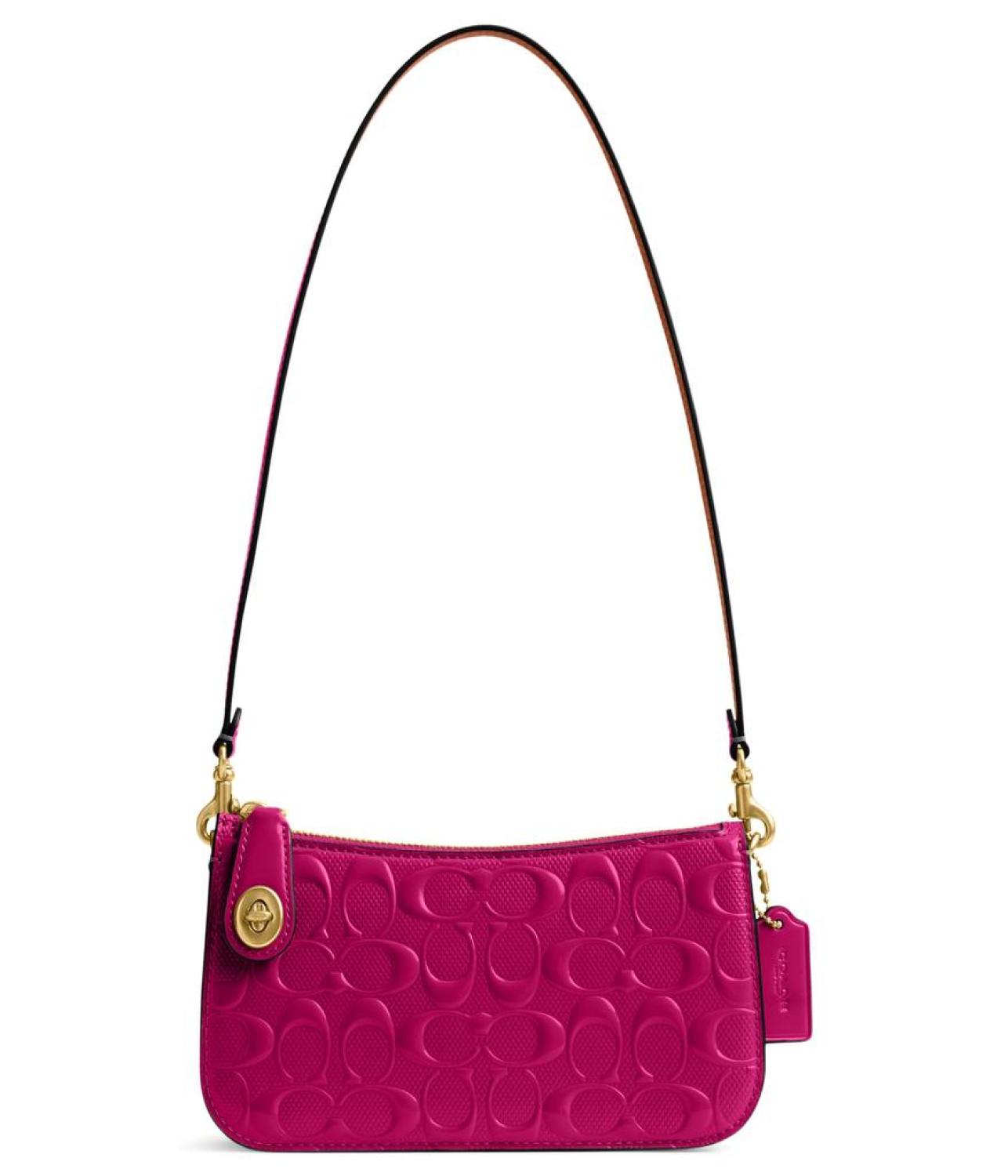 Add some sauce to your outfit by donning the COACH™ Patent Signature Leather Penn Handbag. This handbag comes with a handle on top for easy carrying. The smooth leather construction makes for a durable accessory.