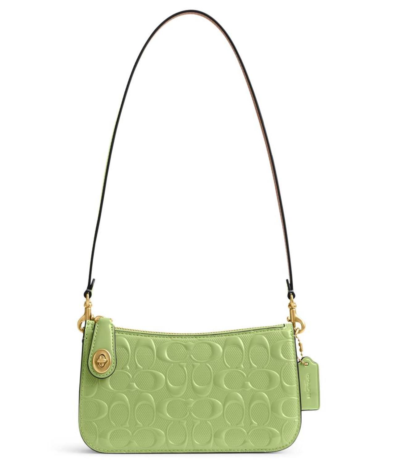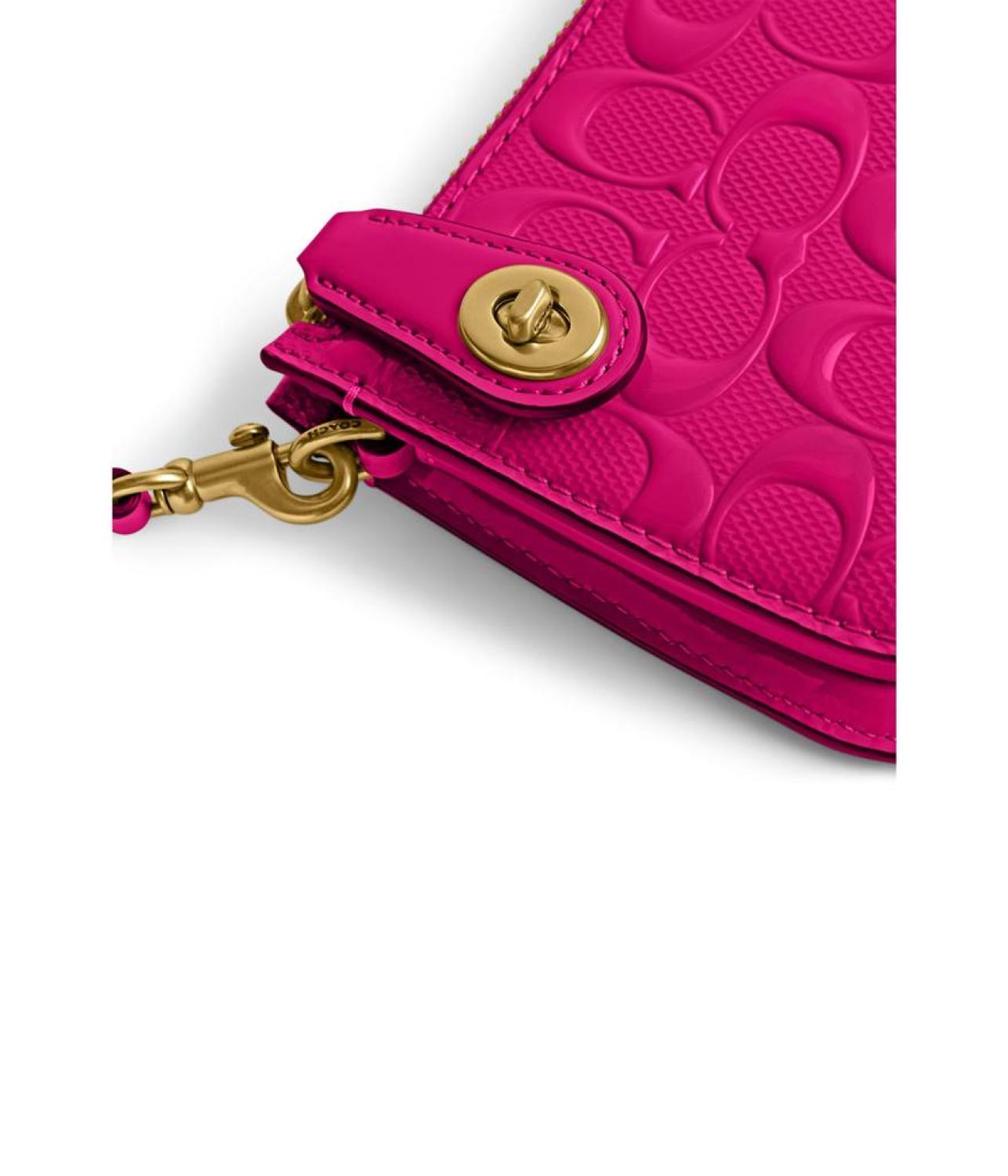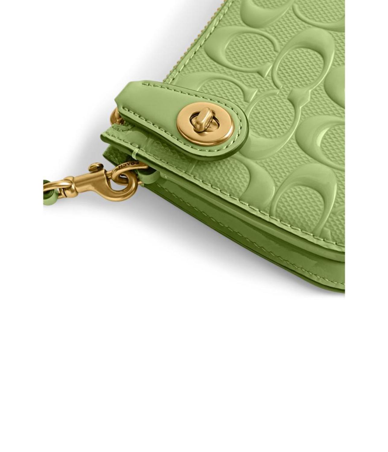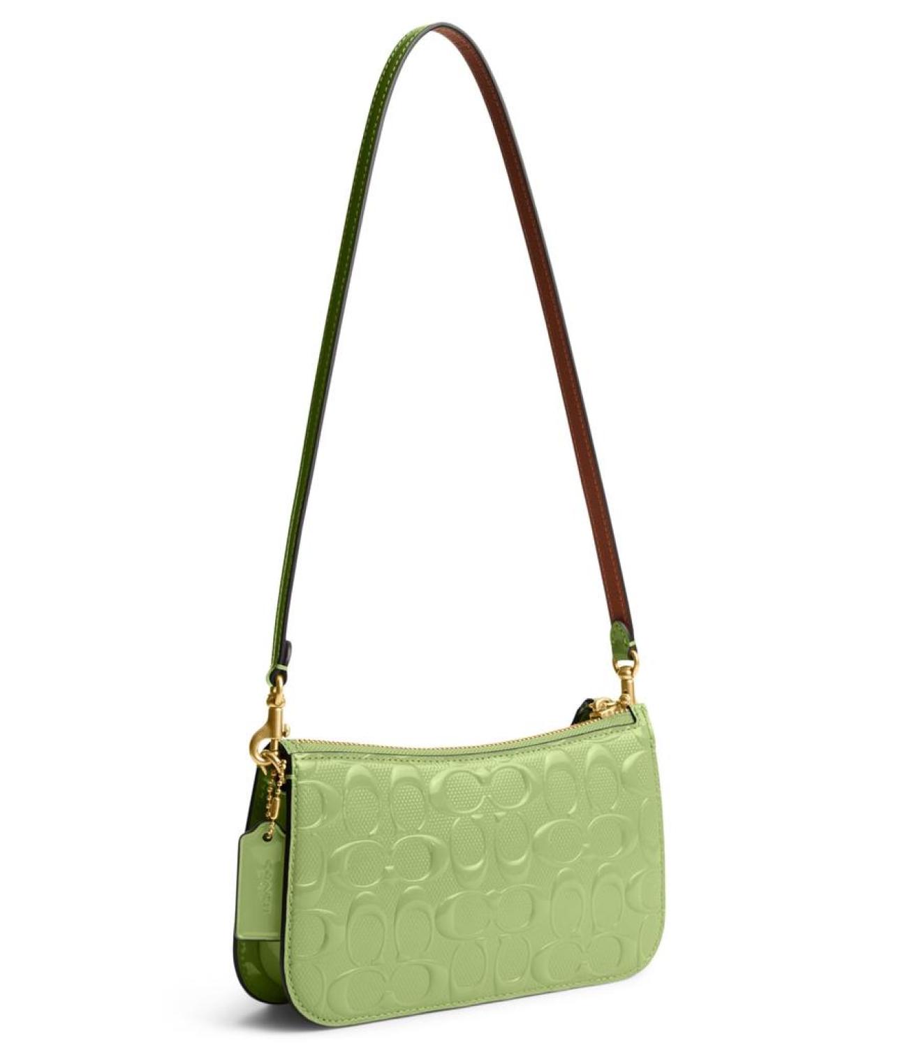 Add some sauce to your outfit by donning the COACH™ Patent Signature Leather Penn Handbag. This handbag comes with a handle on top for easy carrying. The smooth leather construction makes for a durable accessory.