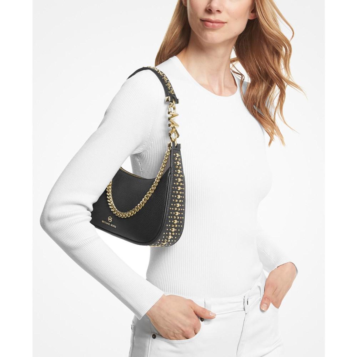 Compact and chic, the Piper by MICHAEL Michael Kors lends style to your everyday look. Small sized bag; 10"W x 8-1/2"H x 3-1/4"D (width is measured across the bottom of handbag); 0.77 lbs. approx. weight Silhouette is based off 5'9" model 8-3/4"L handle Zippered closure Gold-tone hardware & exterior back slip pocket Interior card slots & slip pocket Leather; lining: polyester Spot clean Imported