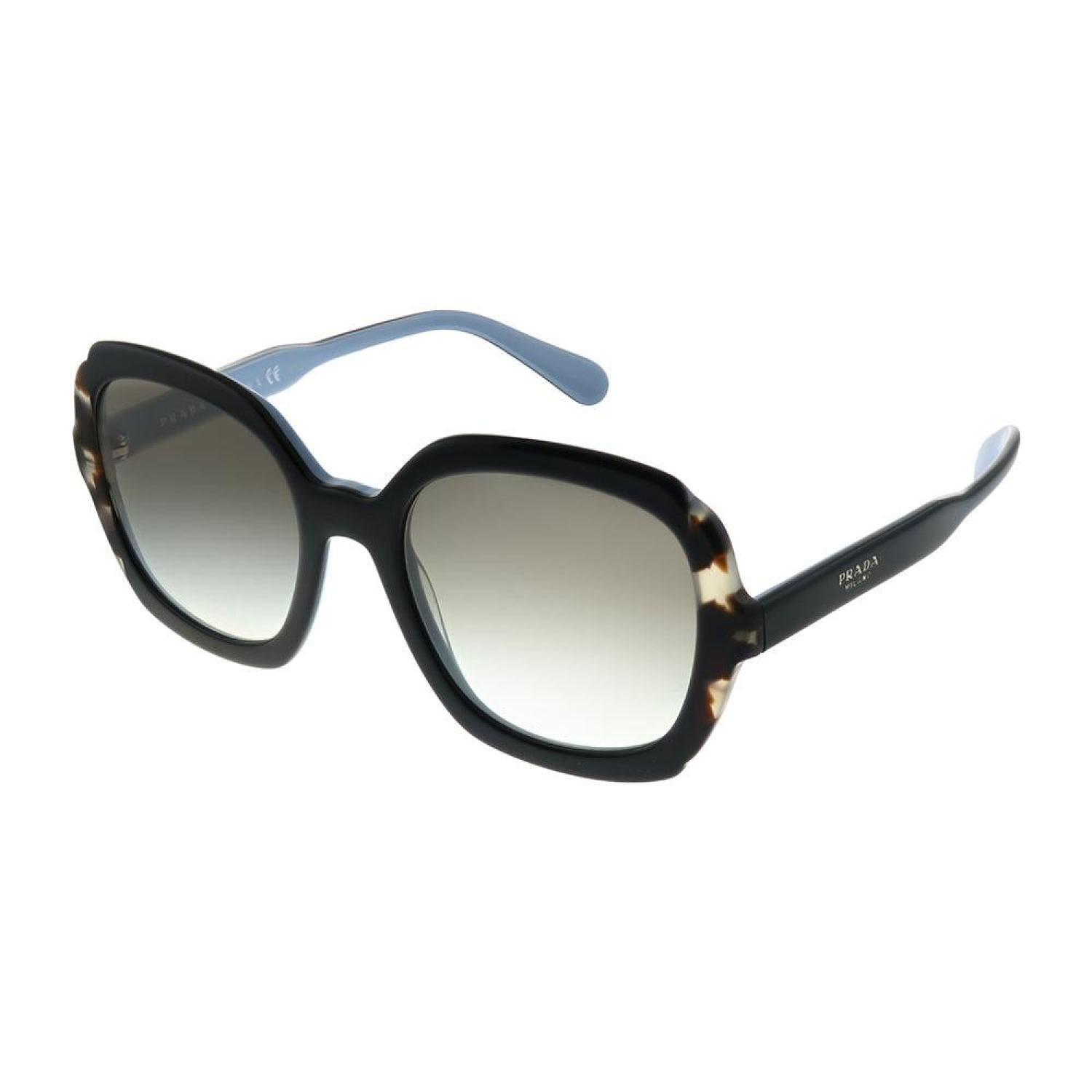 Prada Heritage PR 16US KHR0A7 Womens Black Azure Spotted Brown Grey Gradient Lens SunglassesFrame Color - Black Azure Spotted BrownFrame Style - SquareFrame Material - PlasticLens Color - Grey Gradient LensProtection - UV ProtectedIncludes - Prada box, case, cloth and paperwork *may vary from pictureSize - Lens 54 mm x bridge 21 mm x arms 140 mm All measurements may vary
