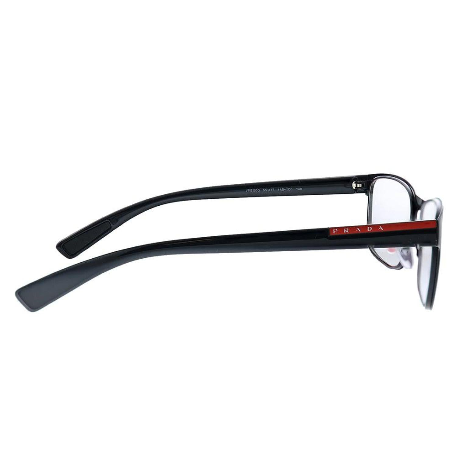 Prada Linea Rossa Lifestyle PS 50GV 1AB1O1 55mm Unisex Black Eyeglasses 55mmFrame Color - BlackFrame Style - RectangleFrame Material - Metal & PlasticIncludes - Prada Linea Rossa box, case, cloth and paperwork *may vary from pictureSize - Lens 55 mm x bridge 17 mm x arms 140 mm All measurements may vary slightly