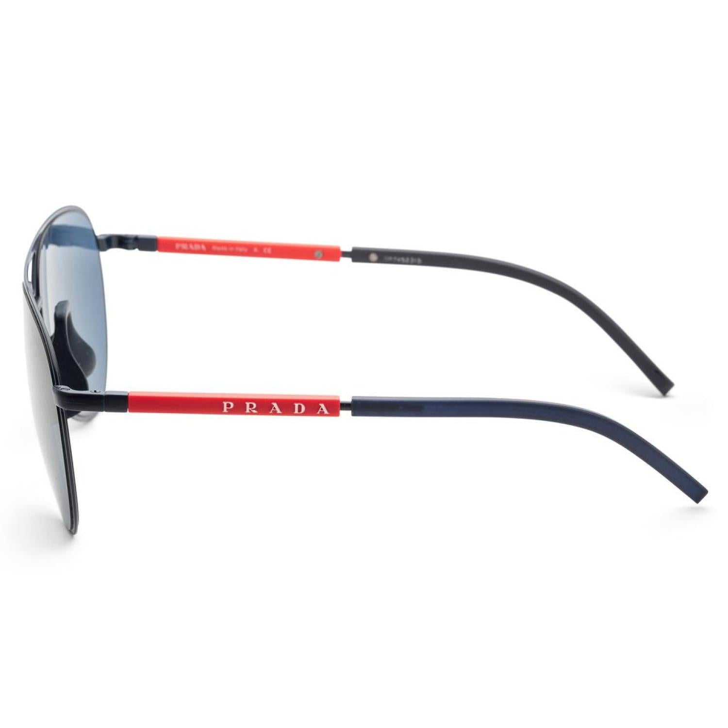 • The Prada men's sunglasses measure at 59 mm lens width, 15 mm bridge width, 145 mm lens width. The frame is aviator-shaped black metal. Made In Italy (PS51XS-06S07L-59)