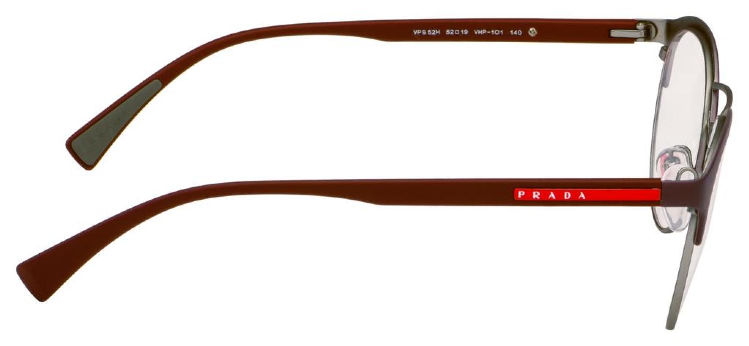 • Dimensions - 52 mm x 19 mm x 140 mm. The frame is Metal Round shape. The frame is Bordeaux Rubber/Gunmetal and the lenses are Demo Lens (PS52HV-VHP1O1-52)