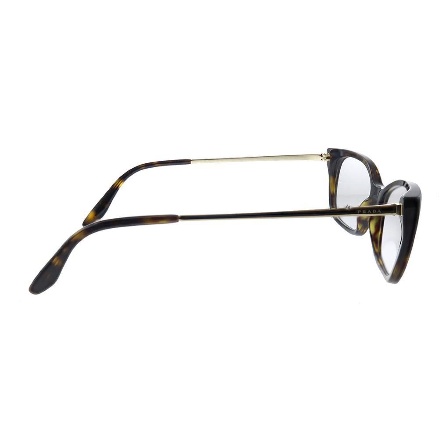 Prada PR 14XV 2AU1O1 52mm Womens Havana Eyeglasses 52mmFrame Color - HavanaFrame Style - Cat-EyeFrame Material - Plastic & MetalIncludes - Prada box, case, cloth and paperwork *may vary from pictureSize - Lens 52 mm x bridge 16 mm x arms 140 mm All measurements may vary slightly