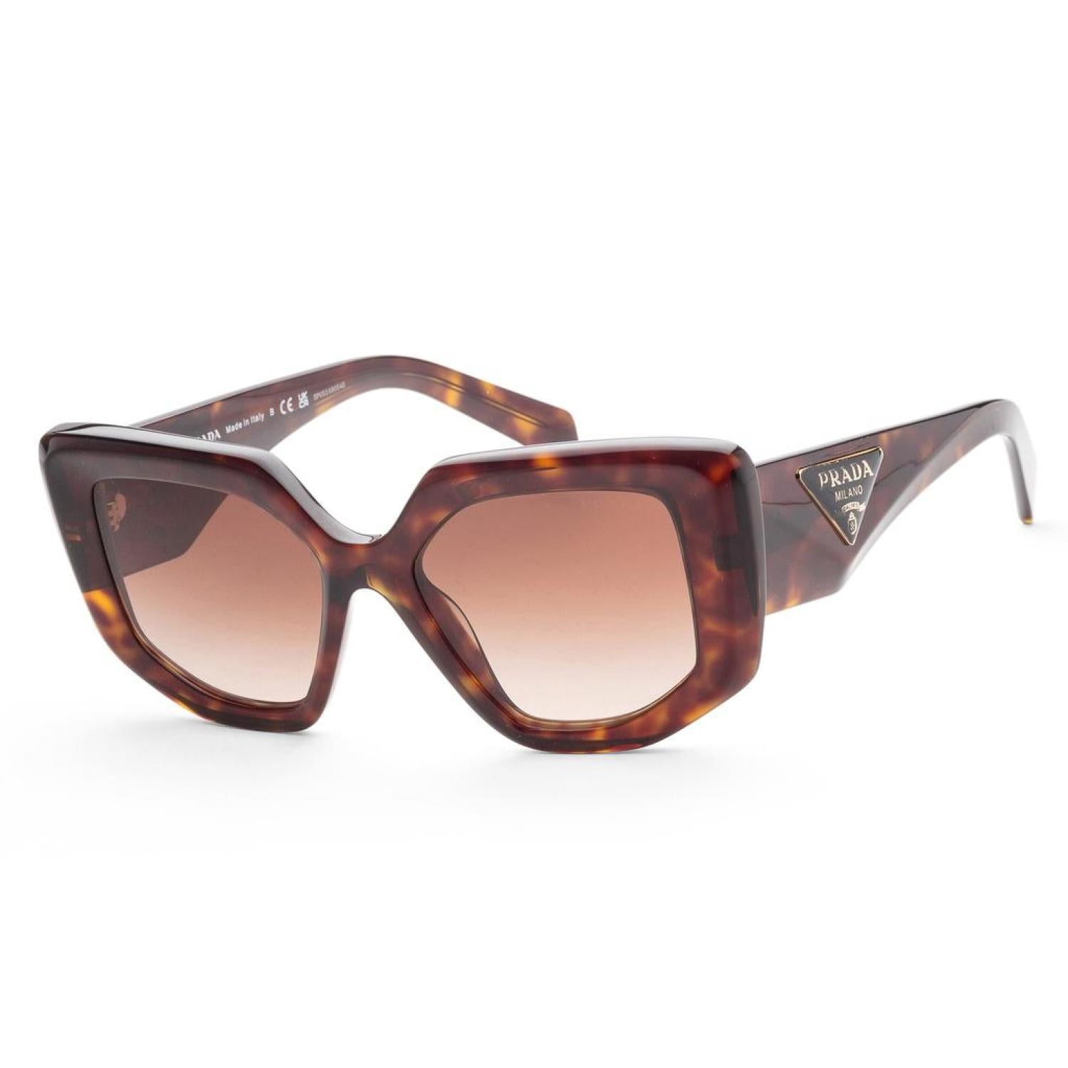 Dimensions - 50 mm x 18 mm x 140 mm. The frame is acetate geometric shape. The lenses are brown gradient and the frame is tortoise. (PR-14ZS-2AU6S1)