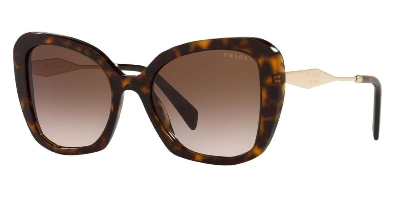 Dimensions - 53 mm x 19 mm x 140 mm. The frame is acetate butterfly shape. The lenses are brown gradient and the frame is tortoise. (PR-03YS-2AU6S1)
