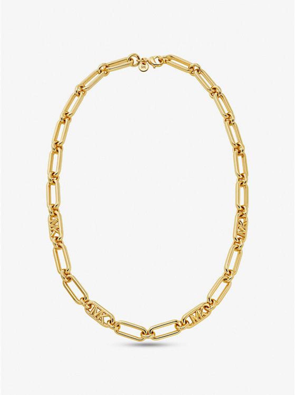 Cool from day to night: this precious metal-plated brass necklace is a key piece for tough-chic style. Strung with high-shine chain links accented with our iconic “MK” initials, it pairs well layered with other favorites that resonate with your personal style.