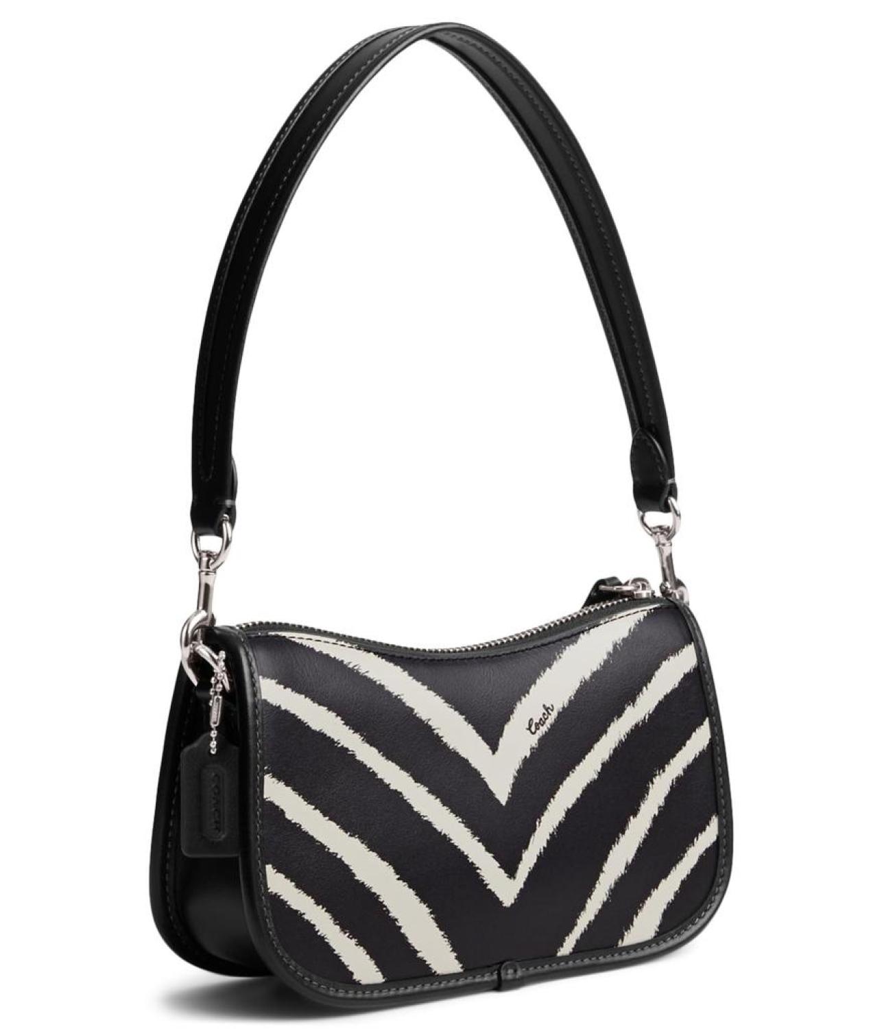 Take your fashion game a notch higher by carrying the COACH™ Printed Leather Swinger 20 bag. Crafted from refined leather, the handbag has a streamlined silhouette and is detailed with a graphic zebra print. It comes with a zippered top closure, an iconic turn lock closure, and a removable grab handle.