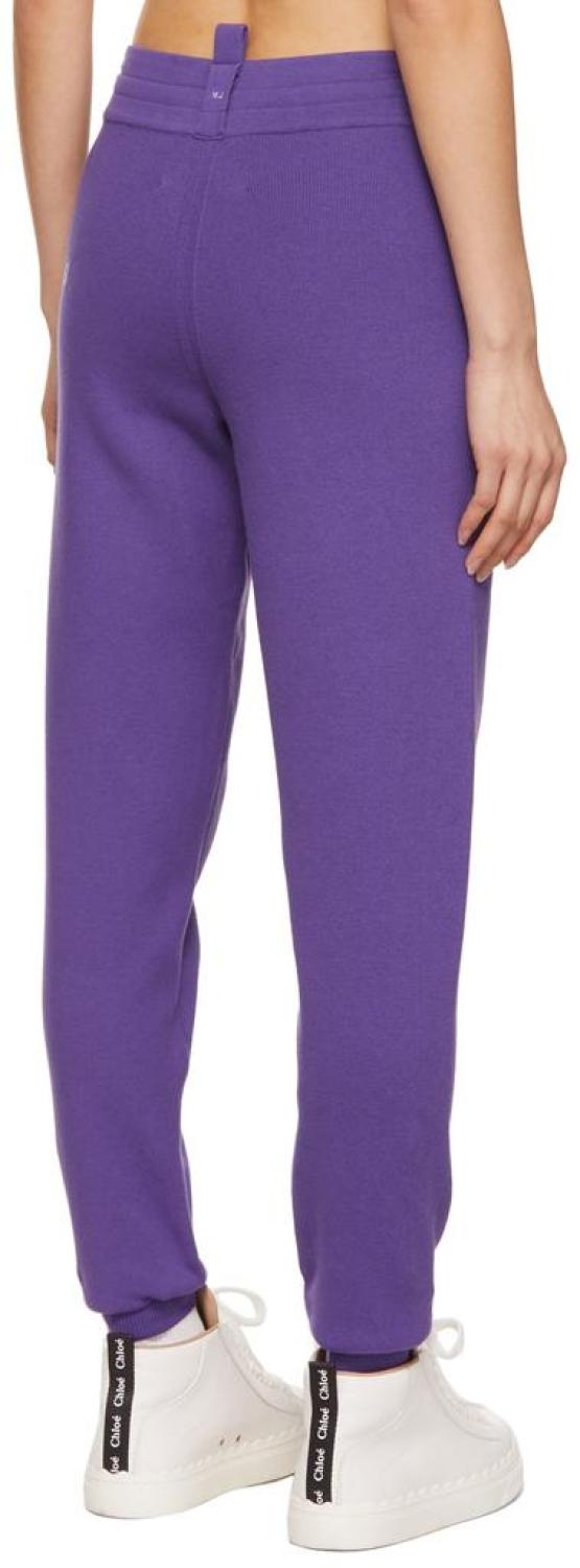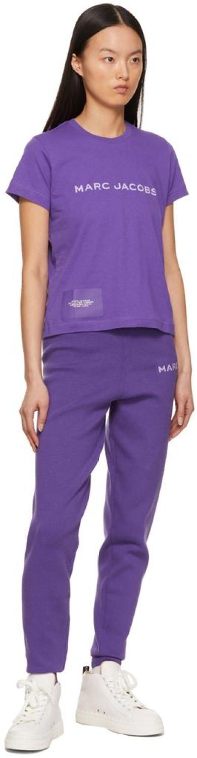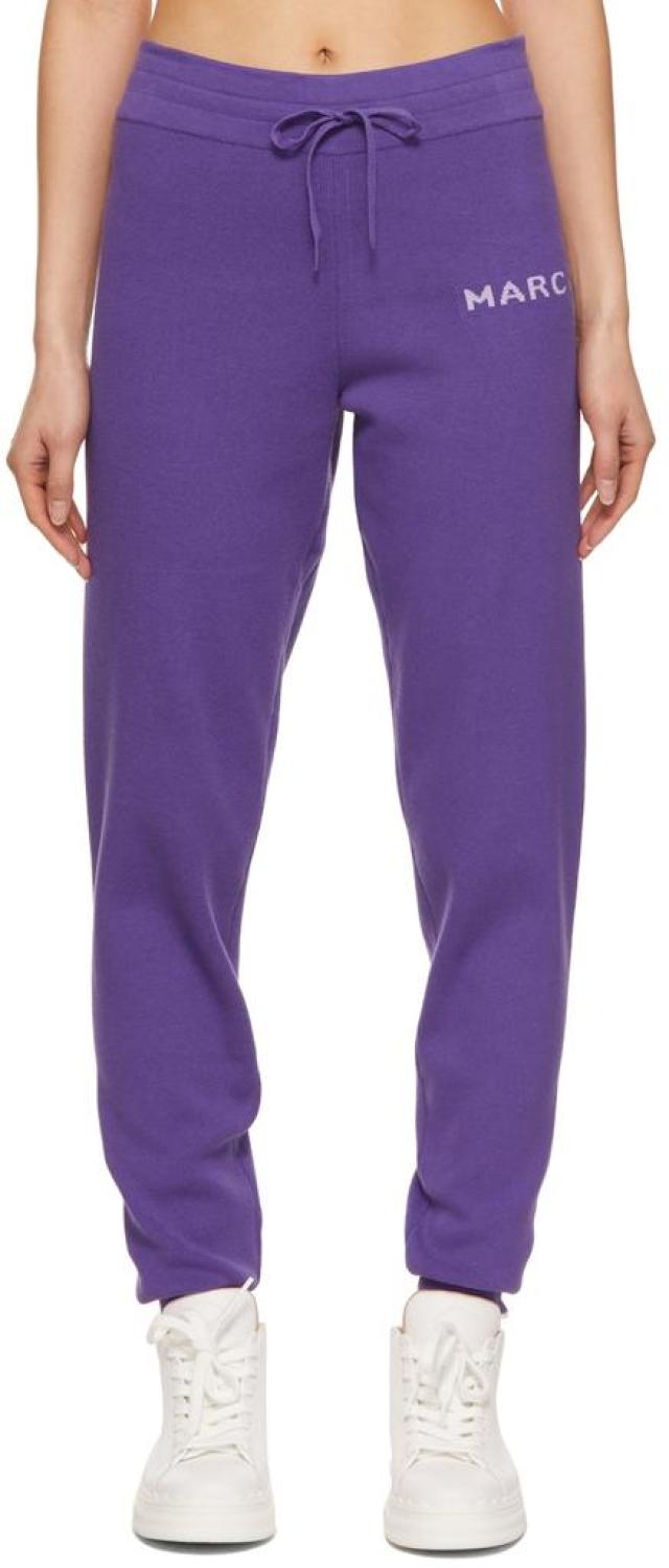 Marc Jacobs Purple 'The Knit Sweatpants' Lounge Pants Slim-fit knit stretch cotton-blend lounge pants in purple. · Jacquard knit logo at front · Drawstring at elasticized waistband · Logo-woven pull loop at back waistband · Elasticized rib knit cuffs Supplier color: Purple potion 87% cotton, 12% nylon, 1% elastane. Made in Turkey. 221190F086005