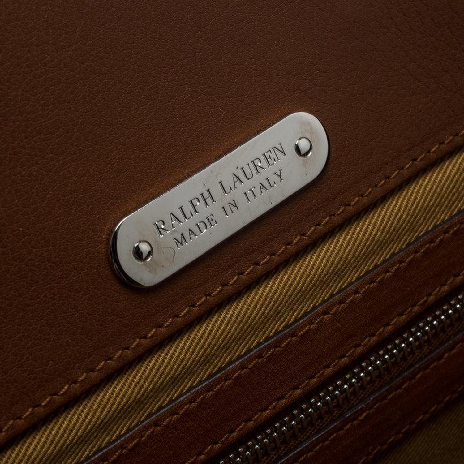 • This Ralph Lauren bag is an exquisite piece that is classy and strong. It is an excellent leather item to own. This Ricky bag is accented with signature silver tone lock closure that opens to a sizeable interior that can stow all your basics. The smart brown colour of the bag further enhances its look.