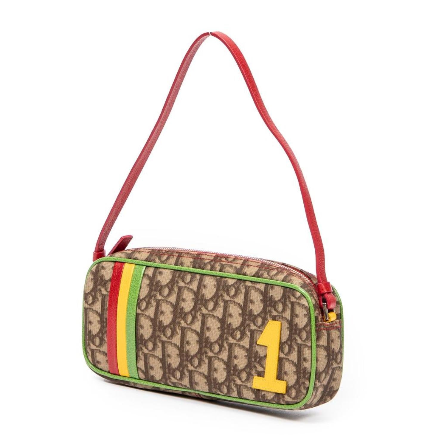 Dior Shoulder Bag in Brown/Red/Yellow/Green Diorissimo Coated Canvas and Silver hardware. Dimensions - 22*19*4cm. Serial number - 05-MA-0054. Inclusions - None.