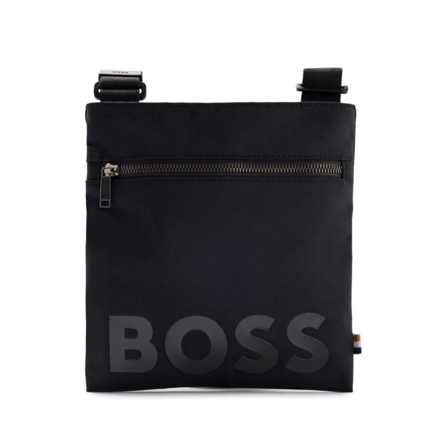 • A compact bag for everyday use by BOSS. This envelope-style bag is woven in soft and lightweight nylon, printed with a BOSS logo and finished with a flag carrying a signature stripe at the side. For our RESPONSIBLE products, we always use at least 60% more sustainable raw materials. This accessory is made from at least 60% certified recycled polyamide. By using recycled polyamide, we aim to save resources by making use of existing plastic material. Recycled nylon is usually made from pre-consumer spinning or fabric waste and may also come from post-consumer industrial fishing nets. We only use raw materials with a verified chain of custody to ensure the use of certified recycled polyamide.