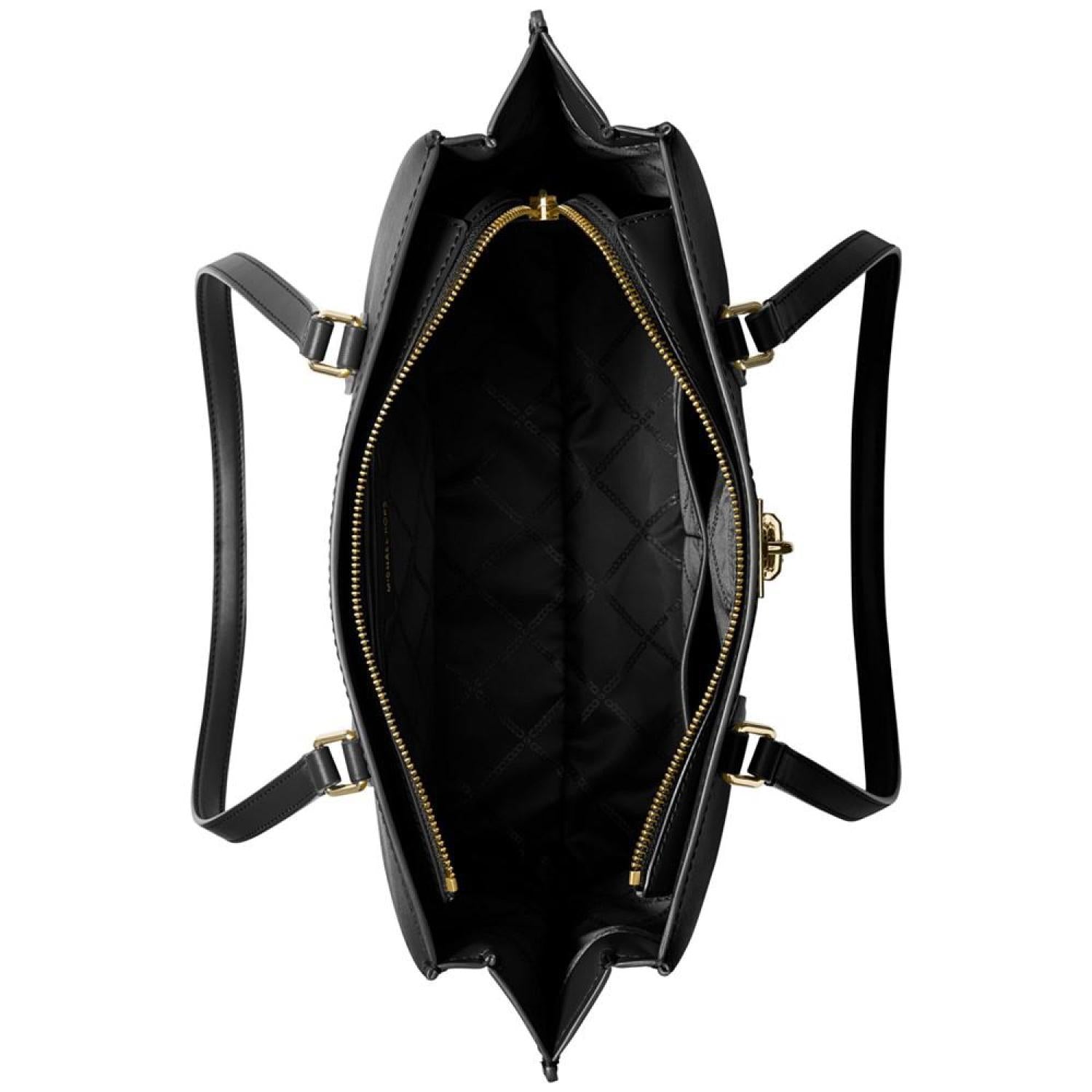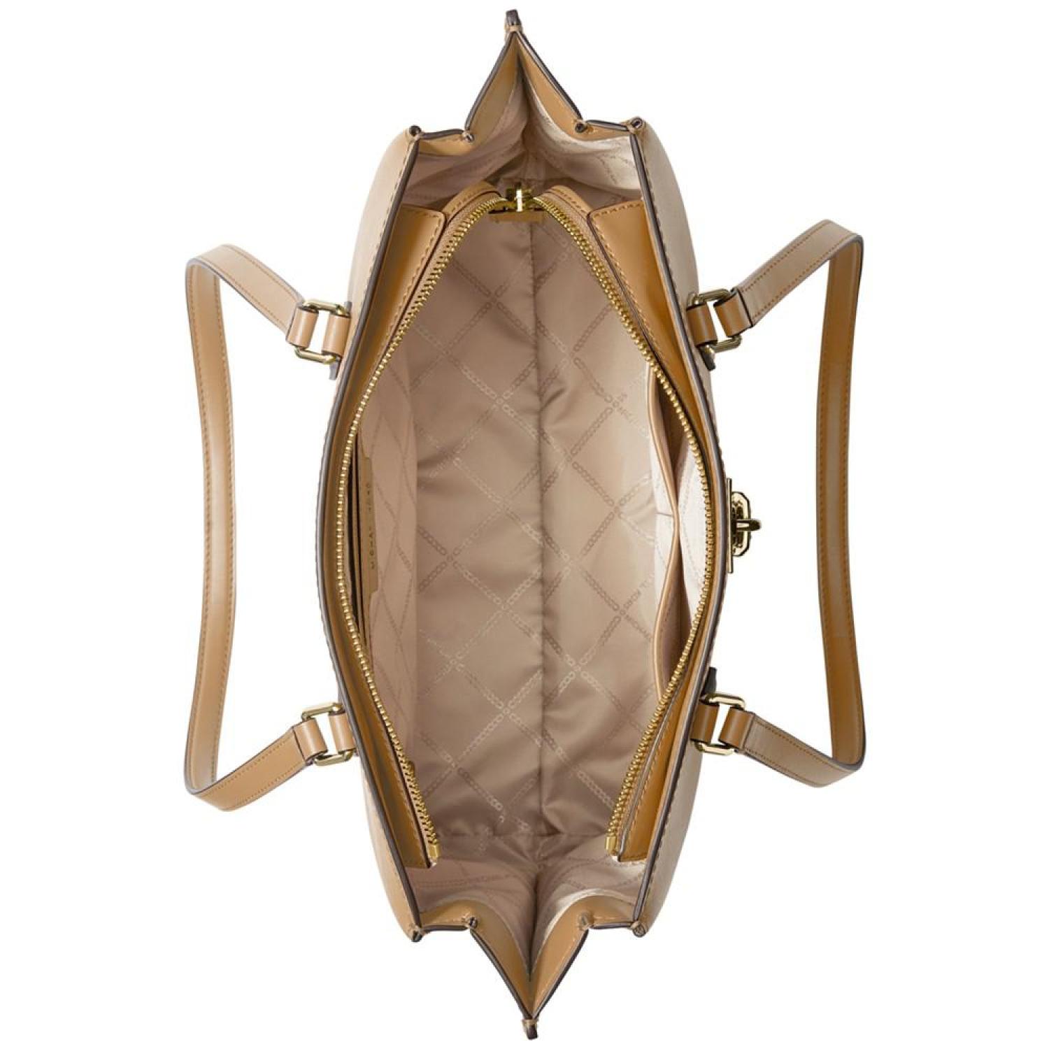 Taking the classic tote to a new level, the Ruby Large Zip-Top Leather Tote by MICHAEL Michael Kors lends sophistication to practicality. Large sized bag; 15"W x 10-3/4"H x 5-3/4"D (width is measured across the bottom of handbag); 1.79 lbs. approx. weight Silhouette is based off 5'9" model 11"L handles Zip-top closure Gold-tone hardware Interior zip & slip pockets Leather; lining: polyester Spot clean Imported