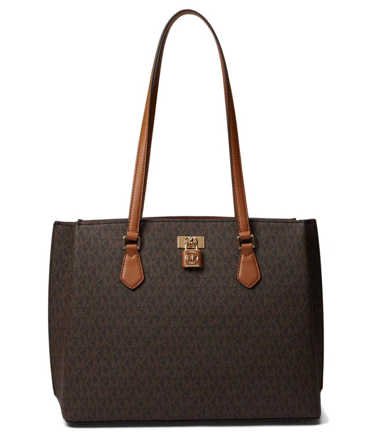 Perfect for daily commutes or shopping sprees, the MICHAEL Michael Kors® Ruby Large Top Zip Tote has got enough space to keep your belongings well-assorted. Canvas construction. Zippered closure. One zippered interior pocket and two slip pockets. Dual top handles. Goldtone hardware. Polyester lining. Imported. Please note, the hardware color and interior lining may differ from the color shown in the photo. Measurements: Bottom Width: 13 in Depth: 5 1/2 in Height: 10 1/2 in Handle Length: 26 in Handle Drop: 10 1/2 in Weight: 1 lb 13 oz