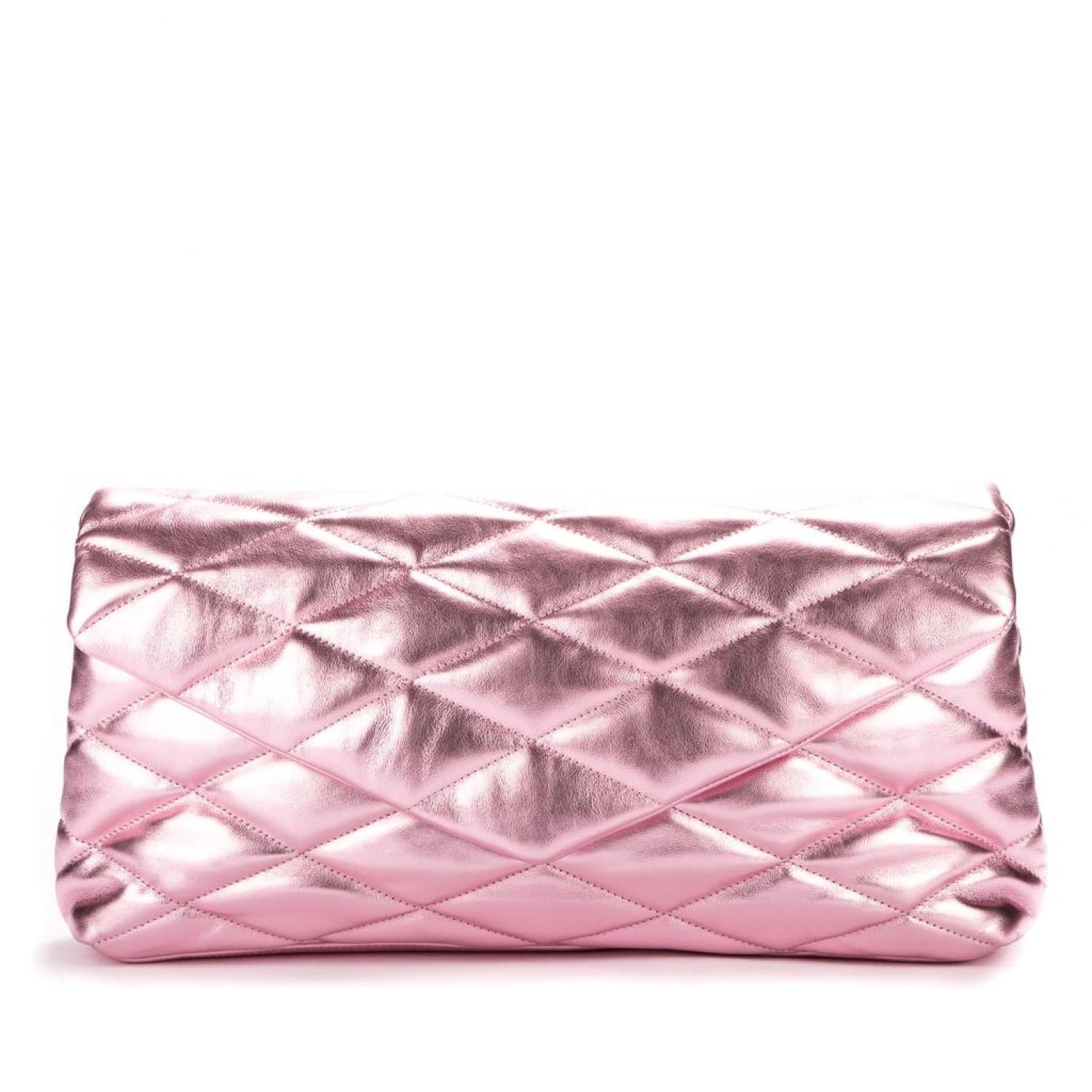 Yves Saint Laurent Clutch in Pink Matelasse Metalic calfskin and Silver hardware. Dimensions - 36*18*7cm. Serial number - MAL655004.0721. Inclusions - Dustbag.