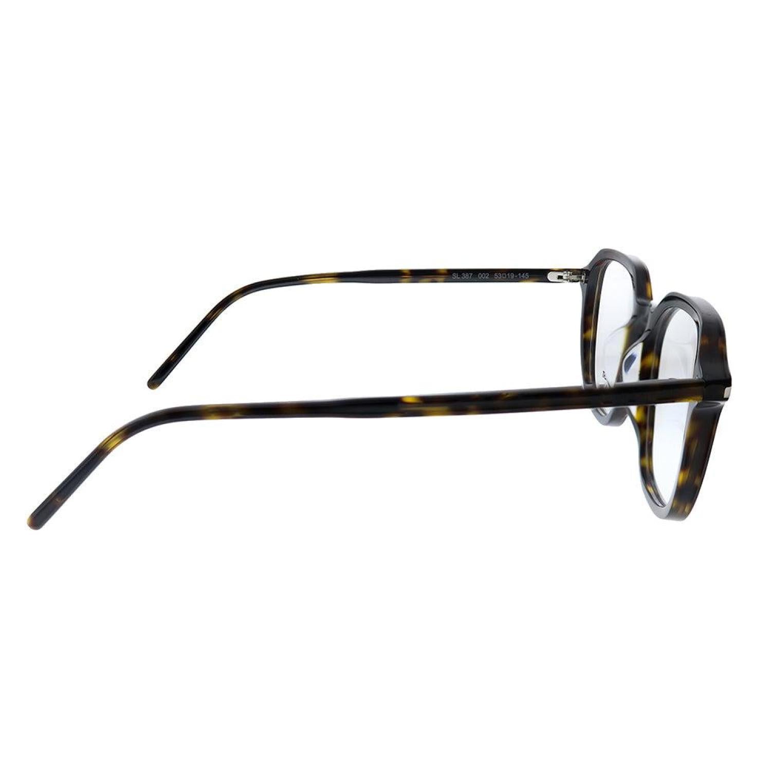 Saint Laurent SL 387 002 53mm Unisex Havana Eyeglasses 53mmFrame Color - HavanaFrame Style - GeometricFrame Material - PlasticIncludes - Saint Laurent case, cloth and paperwork *may vary from pictureSize - Lens 53 mm x bridge 19 mm x arms 145 mm All measurements may vary slightly