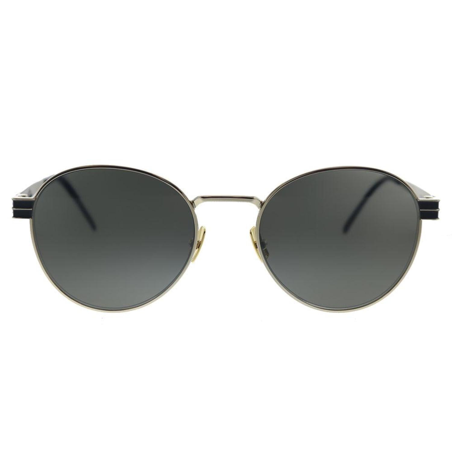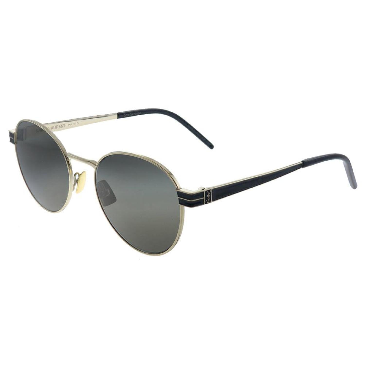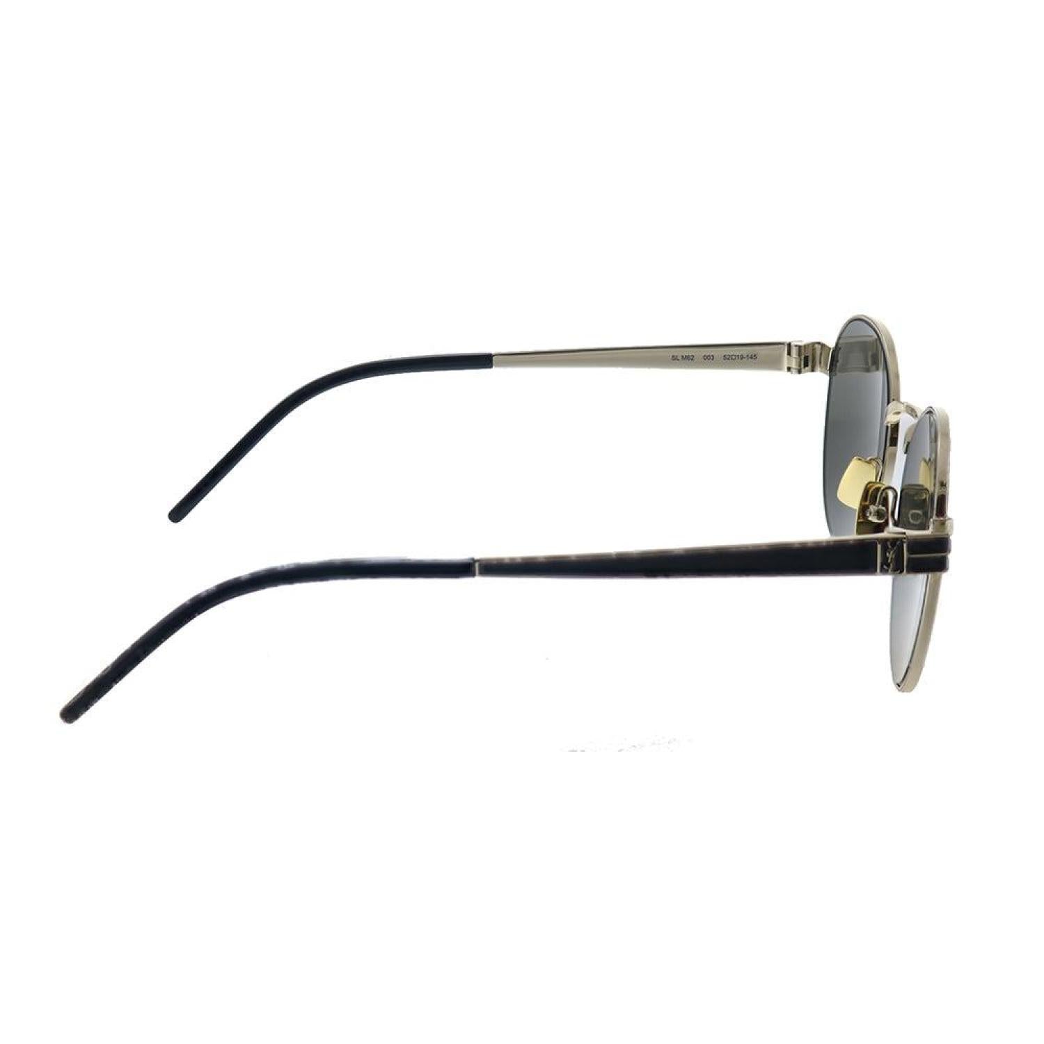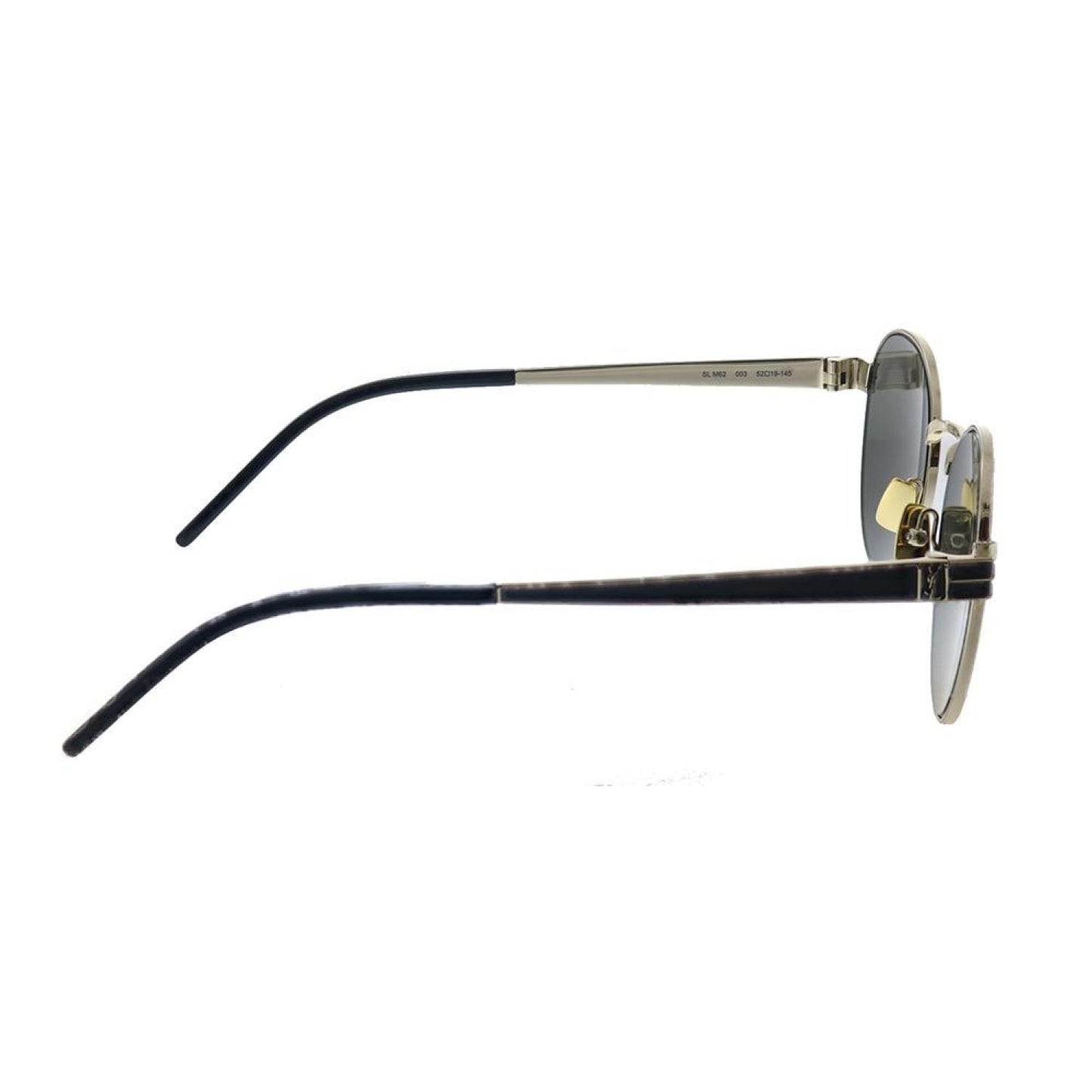 • Saint Laurent SL M62 003 Unisex Gold Black Grey Lens SunglassesFrame Color - Gold BlackFrame Style - RoundFrame Material - MetalLens Color - Grey LensProtection - UV ProtectedIncludes - Saint Laurent case, cloth and paperwork *may vary from pictureSize - Lens 52 mm x bridge 19 mm x arms 145 mm All measurements may vary