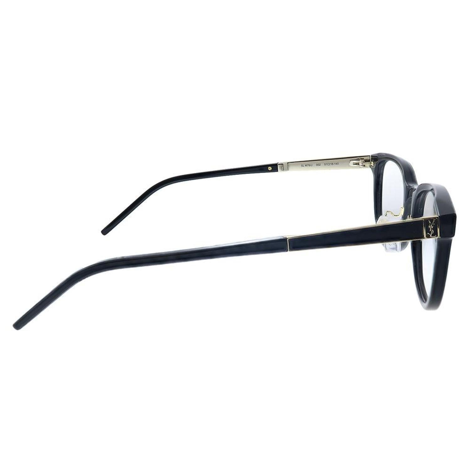 Saint Laurent SL M76/J 002 51mm Womens Black Eyeglasses 51mmFrame Color - BlackFrame Style - RectangleFrame Material - PlasticIncludes - Saint Laurent case, cloth and paperwork *may vary from pictureSize - Lens 51 mm x bridge 18 mm x arms 140 mm All measurements may vary slightly