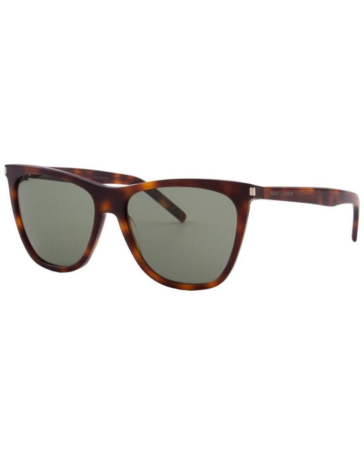 Introducing Saint Laurent Unisex 58mm Sunglasses - a must-have addition to your collection of accessories. These gorgeous sunglasses are designed in a classic cat-eye shape, perfect for complementing oval, round, diamond, triangle, or oblong shaped faces. The frame boasts a shiny Havana color, giving it an elegant and sophisticated look. The green lenses provide 100% UV protection, ensuring your eyes are safe from harmful rays. The plastic lenses are lightweight and durable, making them perfect for everyday wear. The temple features the Saint Laurent logo, adding a touch of luxury to this stunning piece. With a lens width of 58mm, a bridge width of 16mm, and arms that are 145mm long, these sunglasses are the perfect size for most faces. Model #SL 526 is 100% genuine, and even though we may purchase merchandise from authorized sellers instead of directly from the brand, our authenticity remains uncompromised. Shop with confidence knowing that we stand by the authenticity of every product sold on our site. Add Saint Laurent Unisex 58mm Sunglasses to your cart today and elevate your style game!