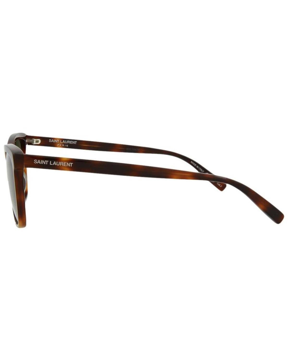 Introducing the Saint Laurent Women's SL502 56mm Sunglasses, the ultimate luxury accessory for the modern woman. Saint Laurent is a brand known for its iconic style and modern glamour, and these sunglasses are no exception. The cat eye frame shape adds a touch of sophistication, while the Havana Green color is effortlessly chic. The lens color, green, is perfect for those sunny days and flatters those with an oval, round, diamond, triangle, or oblong shaped face. With a lens width of 56mm, bridge of 16mm, and arms that are 145mm long, these sunglasses are designed to fit comfortably on any face shape. Made in Italy and modelled after the SL502-30013066003, these sunglasses are 100% genuine and authentic. Don't settle for anything but the best - add the Saint Laurent Women's SL502 56mm Sunglasses to your collection today!