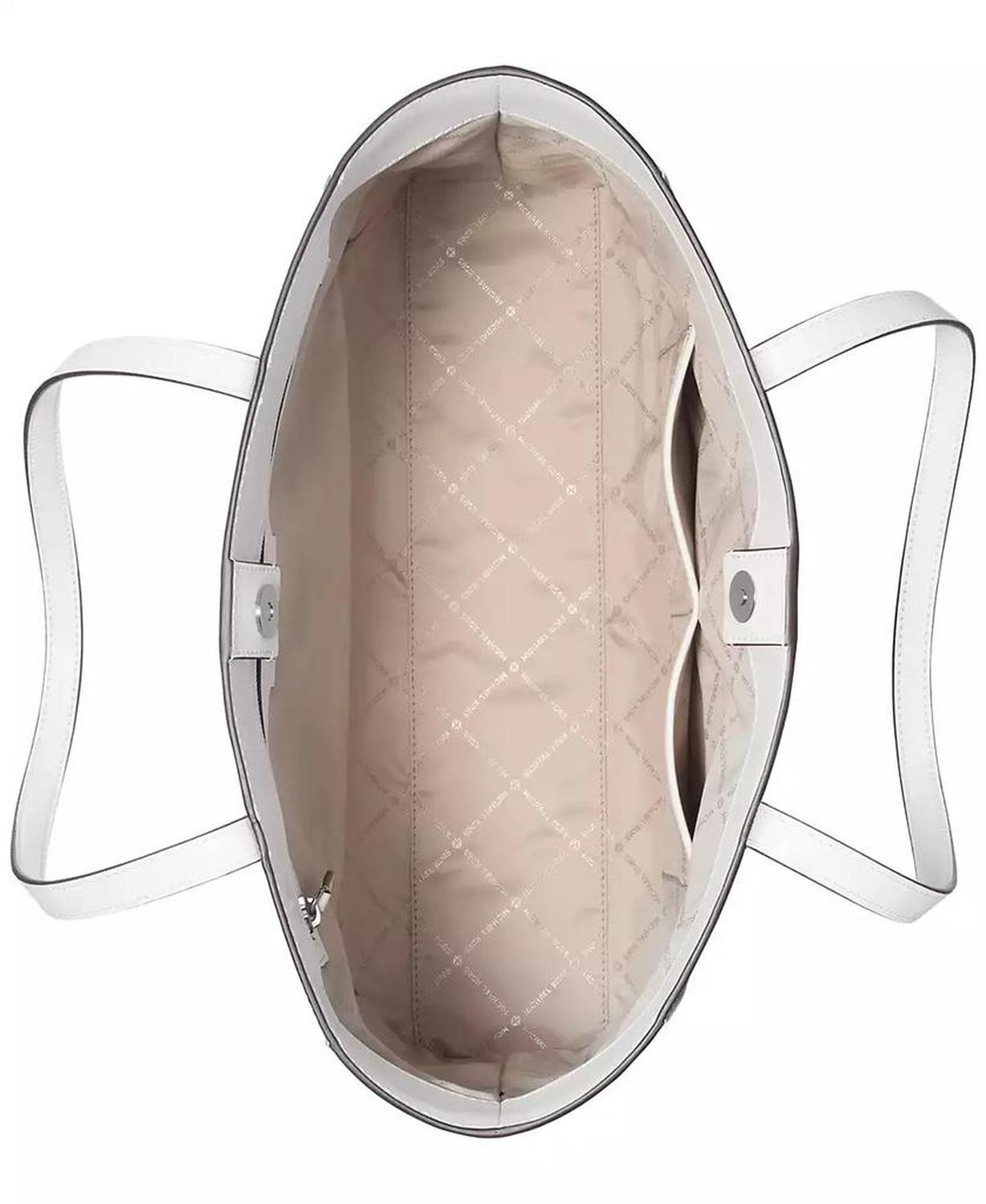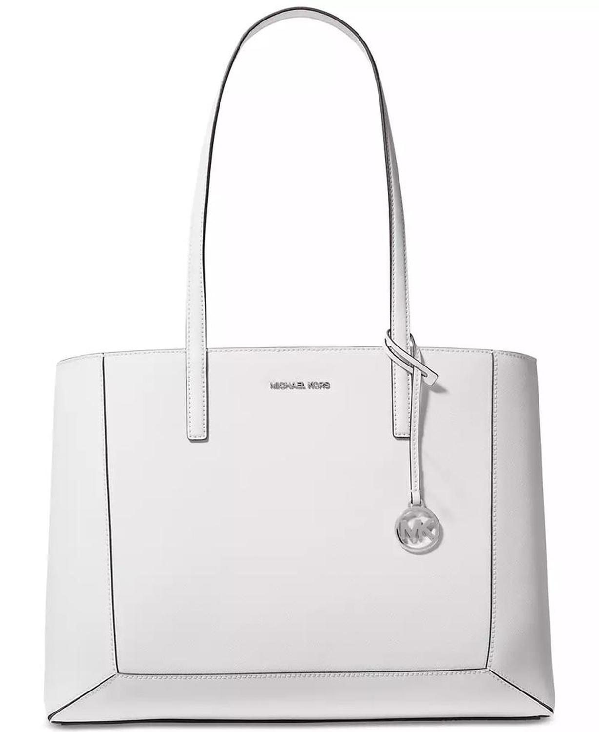 • Showcasing bright, optic white leather, this tote by MICHAEL Michael Kors offers ample space and a snap closure for convenience and ease.