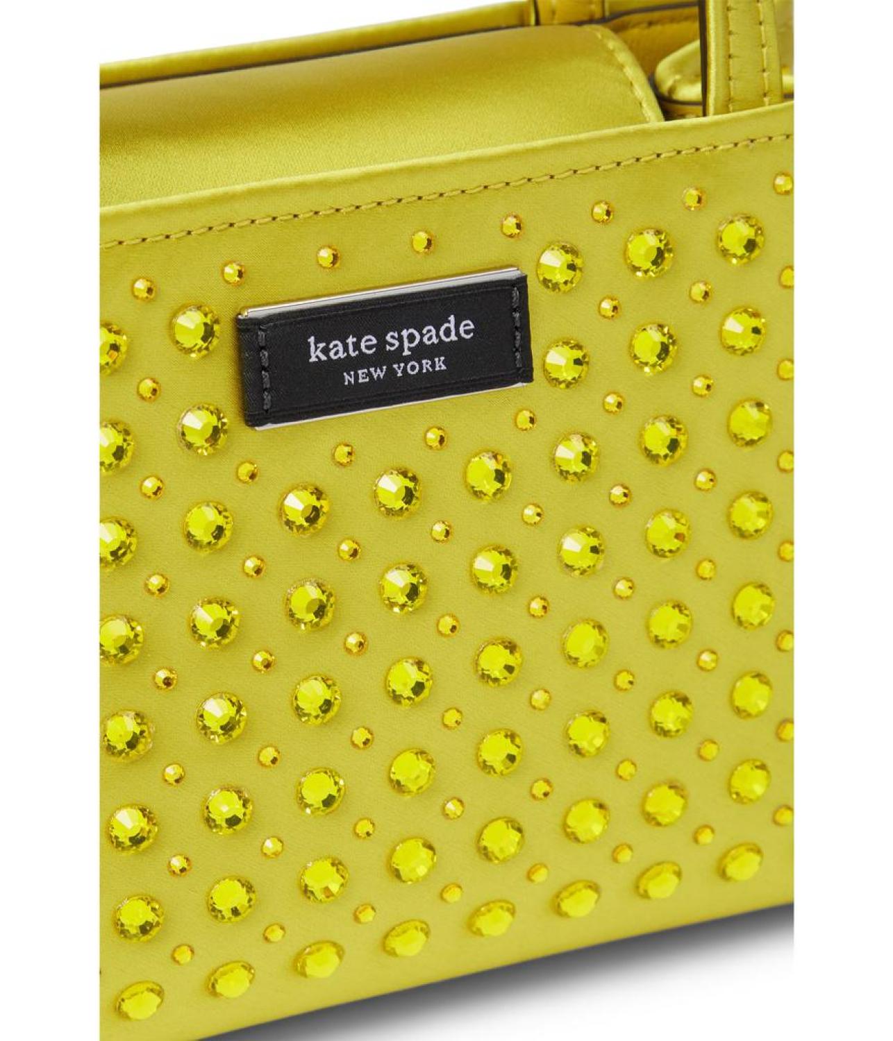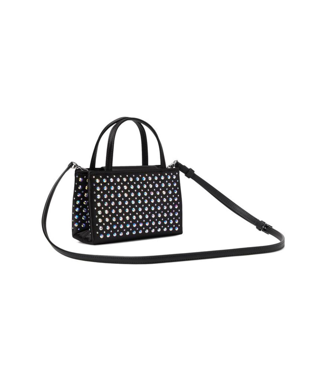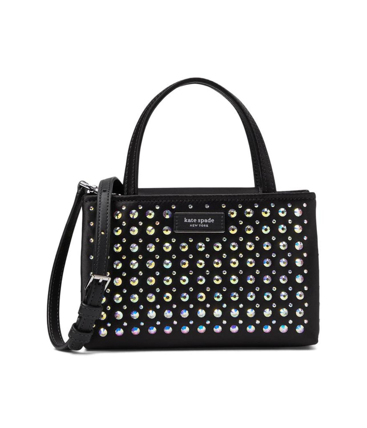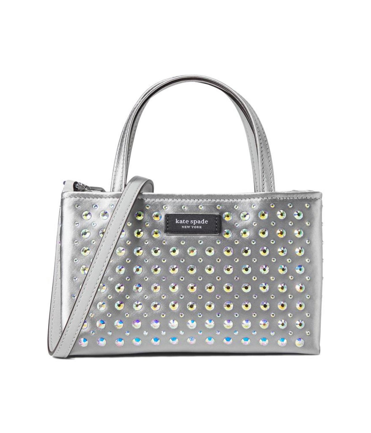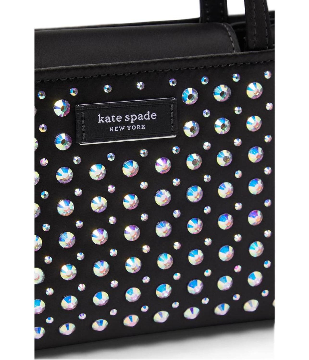 • Give an edgy update to your everyday look by carrying the Kate Spade New York® Sam Icon Crystal Embellished Fabric Mini Tote. Embellished with crystals, the handbag comes with a detachable and adjustable crossbody strap. The handbag has a fabric construction and features dual top grab handles and magnetic snap closure with a flap.