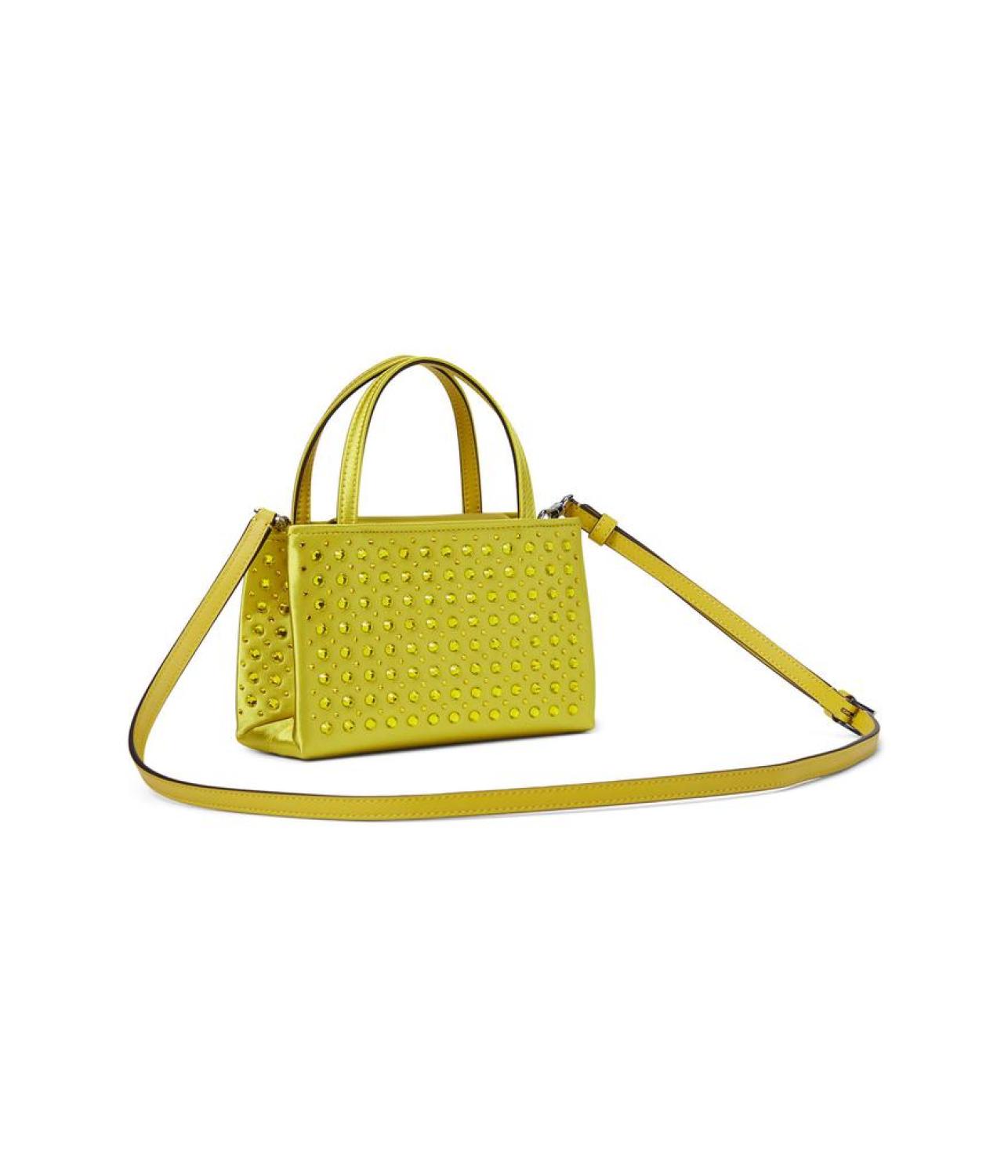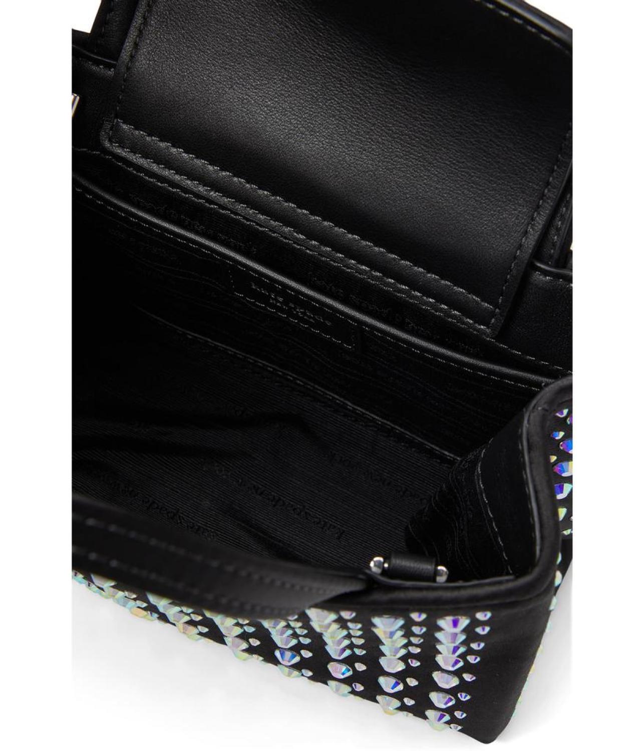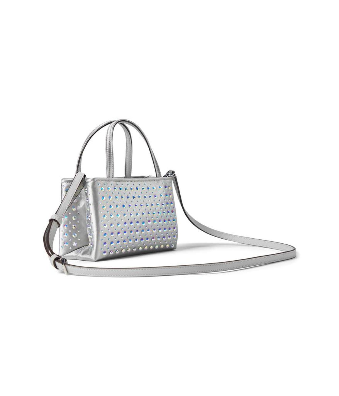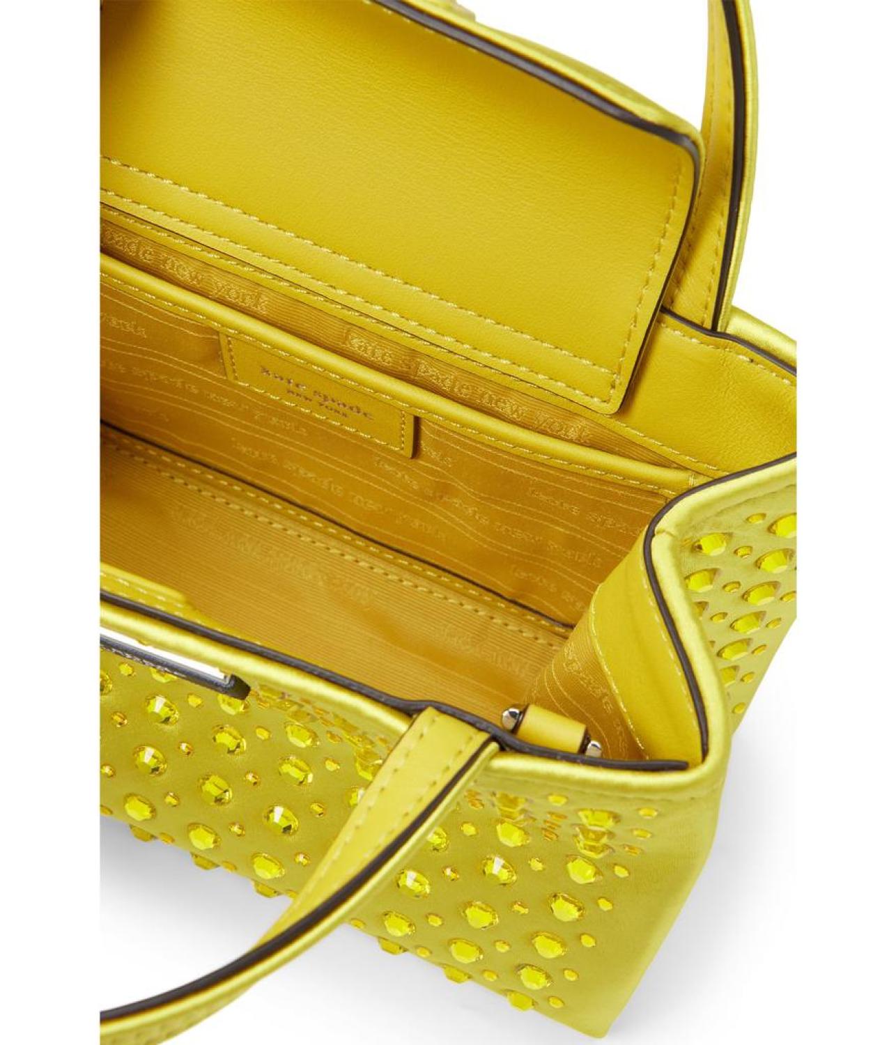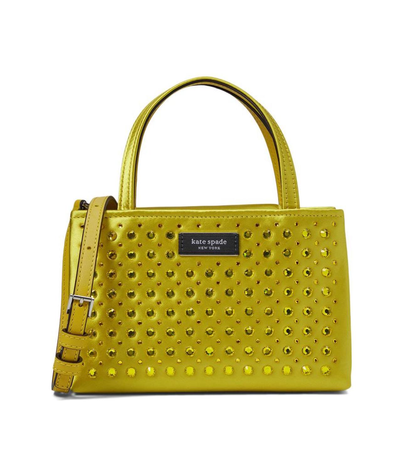 • Give an edgy update to your everyday look by carrying the Kate Spade New York® Sam Icon Crystal Embellished Fabric Mini Tote. Embellished with crystals, the handbag comes with a detachable and adjustable crossbody strap. The handbag has a fabric construction and features dual top grab handles and magnetic snap closure with a flap.