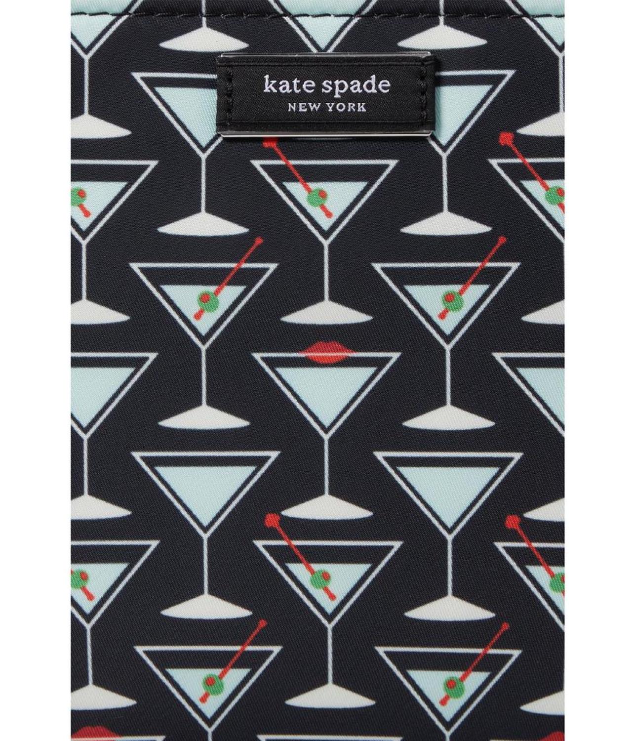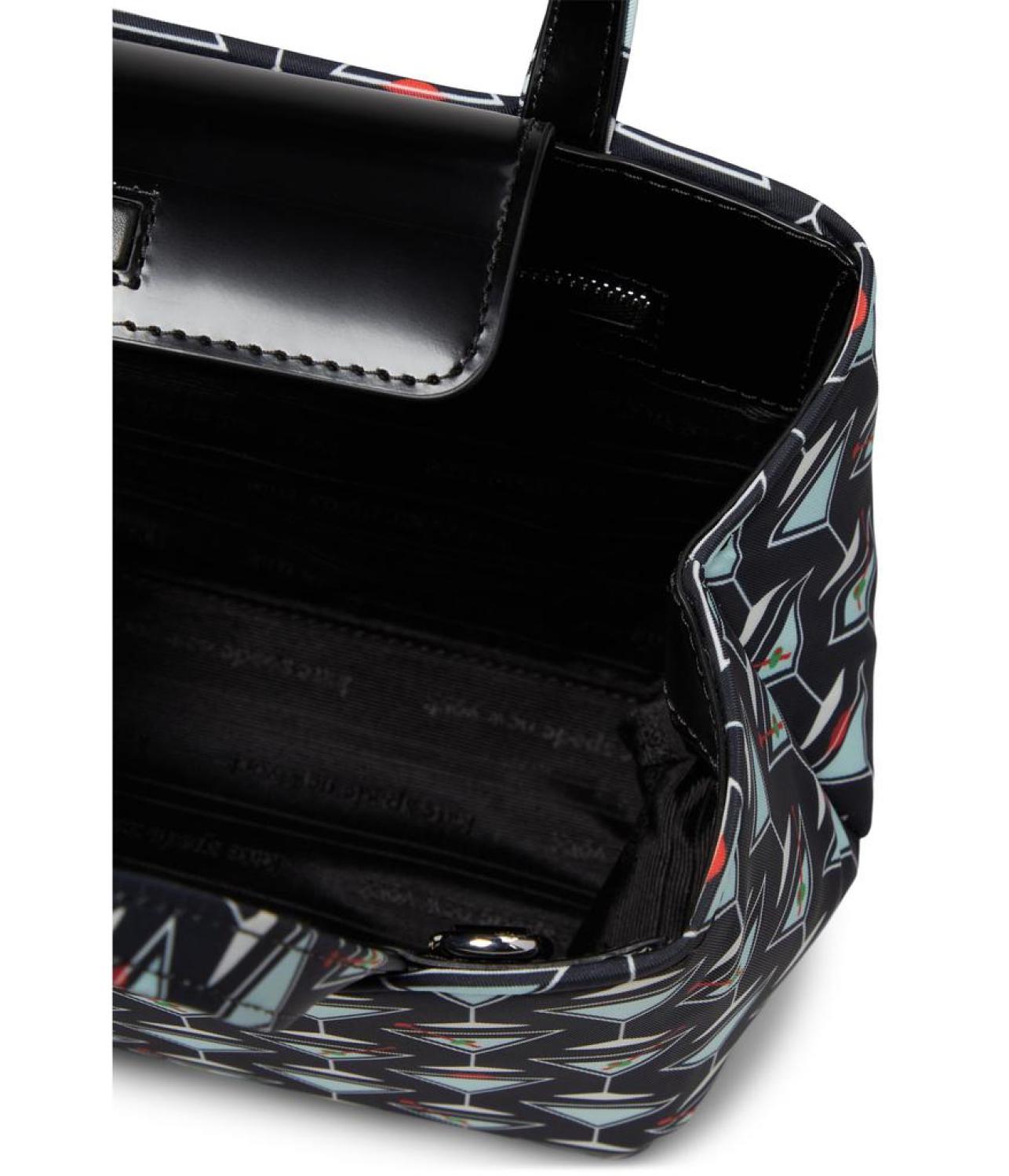 • Let your confidence be on top  carrying the   Kate Spade New York® Sam Icon Martini Printed Fabric Small Tote. This handbag features the magnetic snap closure, one main compartment, and two handles.